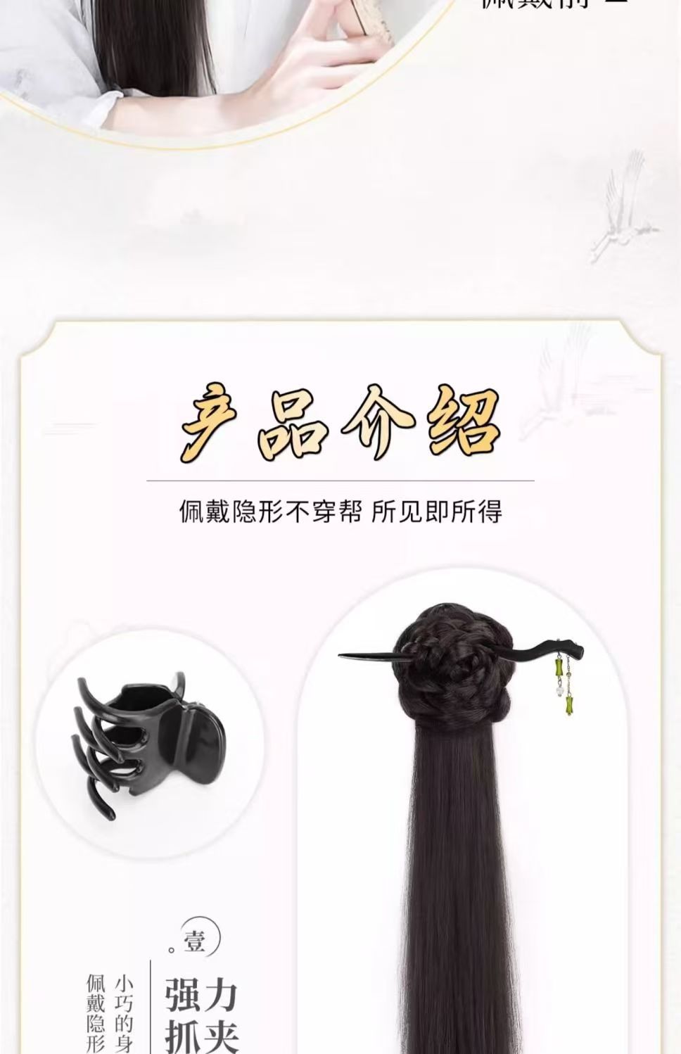 bamboo stick national style bud micro-roll ponytail-natural black