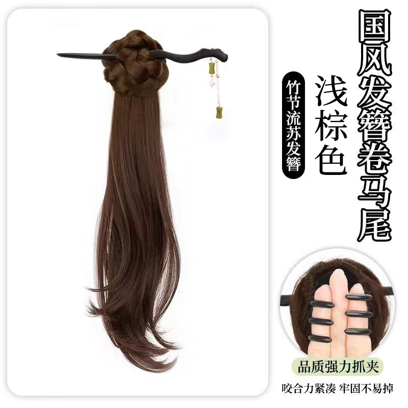 bamboo stick national style bud micro-roll ponytail-light brown