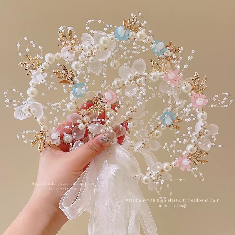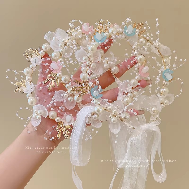 1# white pearl small flower headband