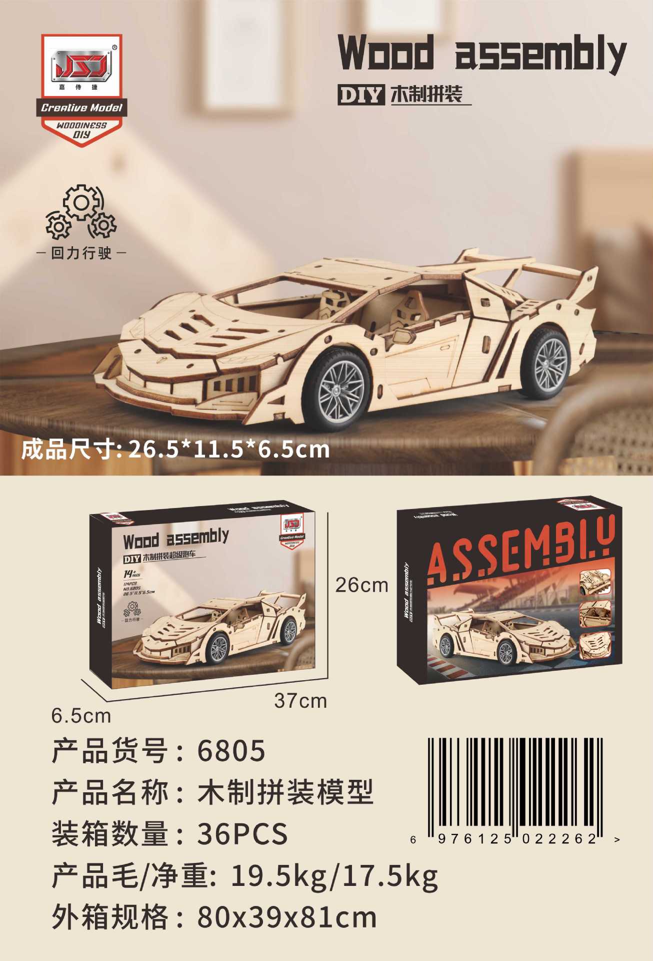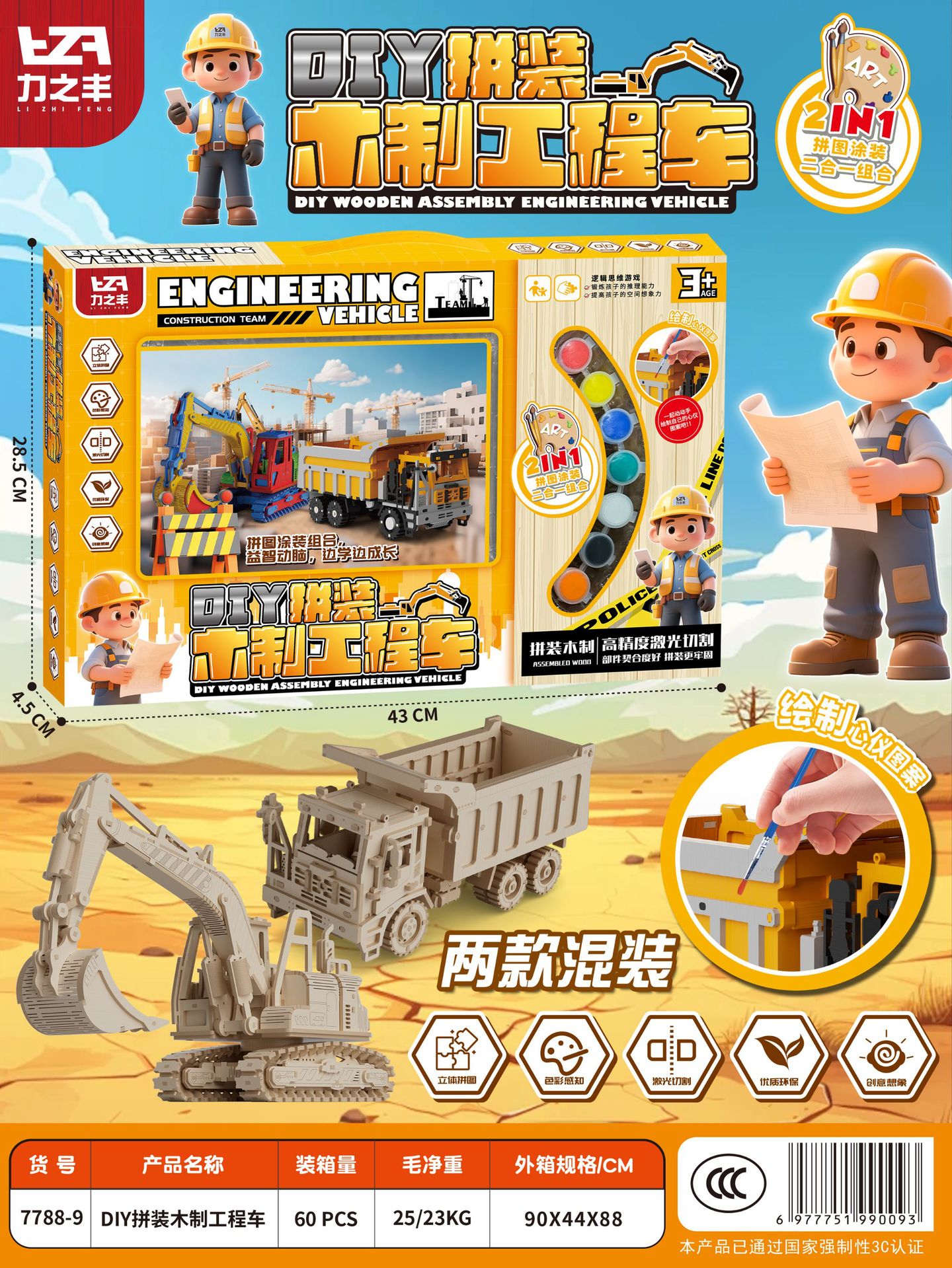 7788-9-assembled wooden engineering vehicle (2 packs)