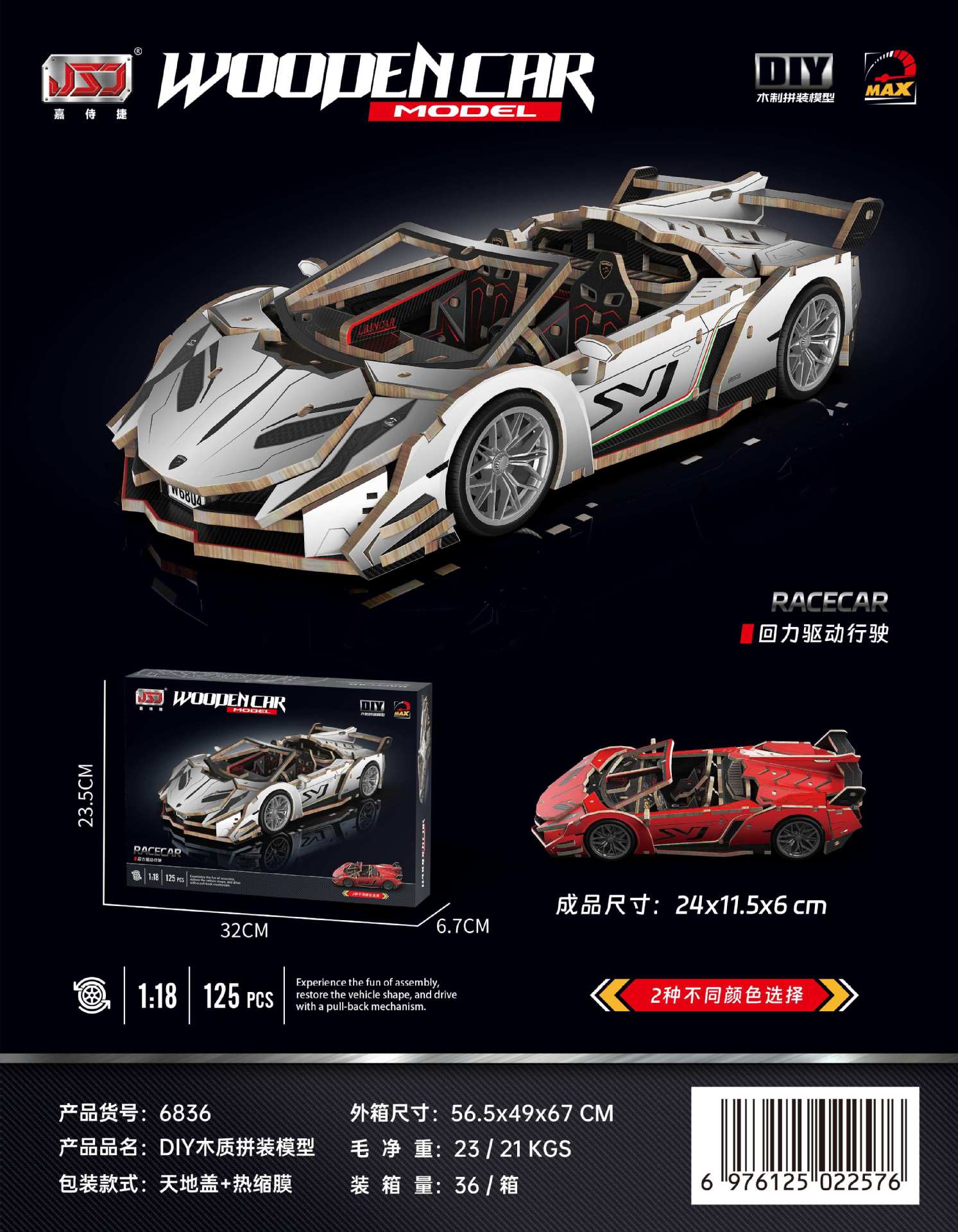 6836-warrior wooden racing car
