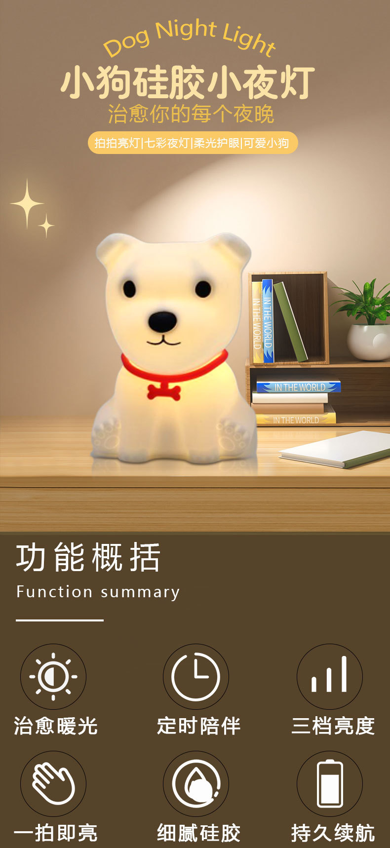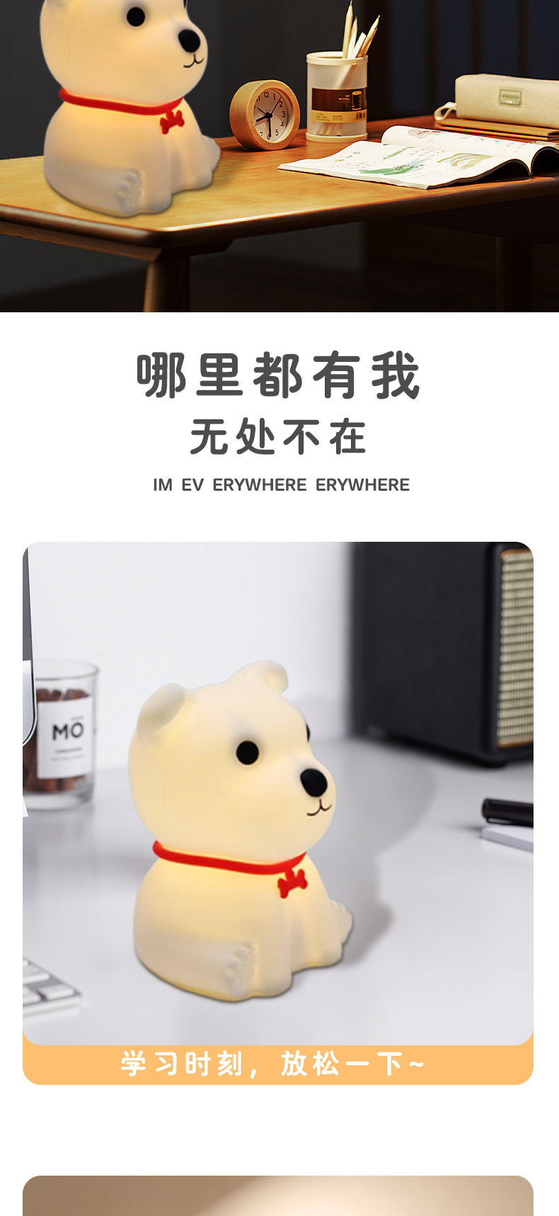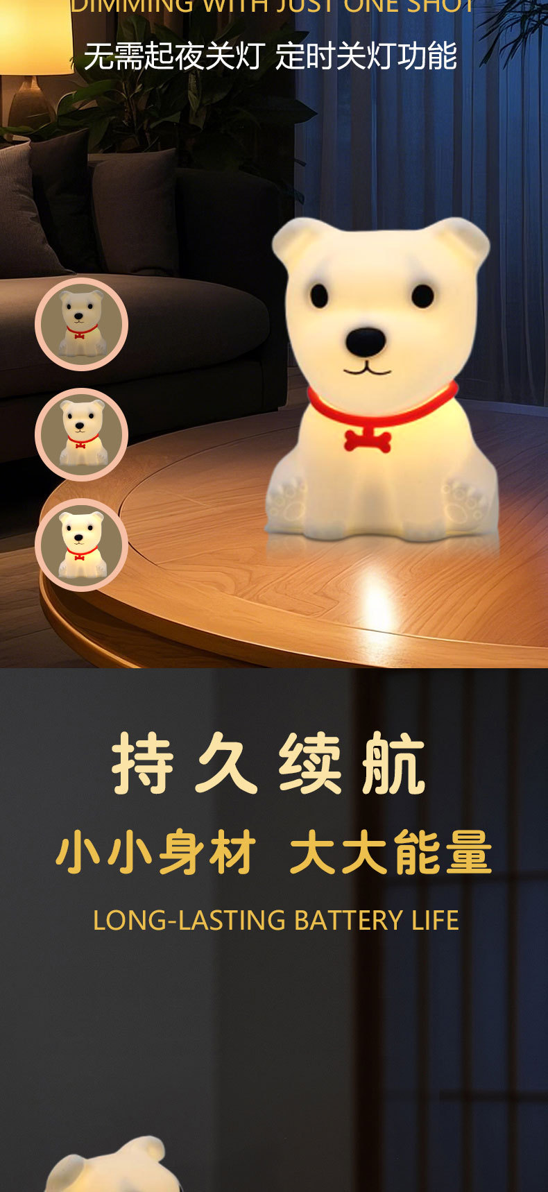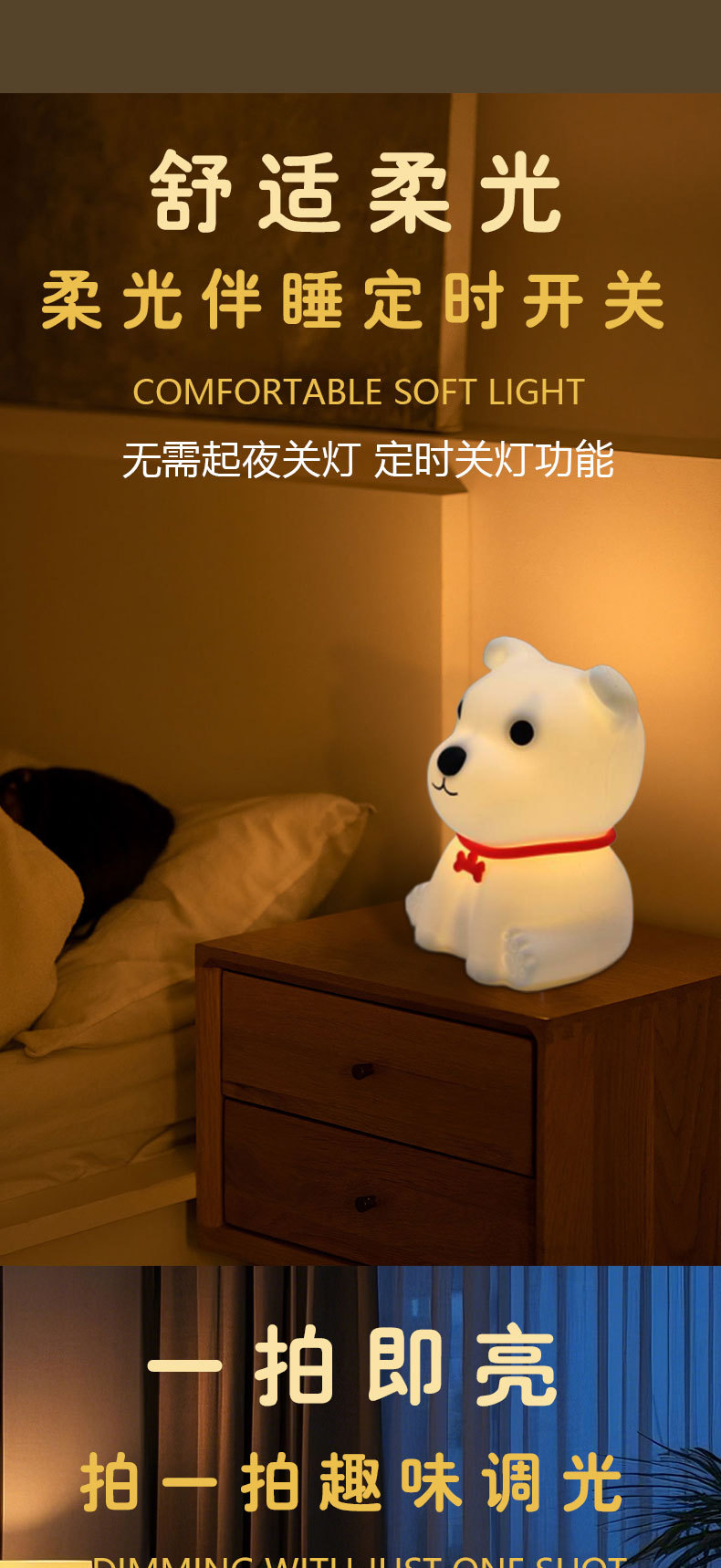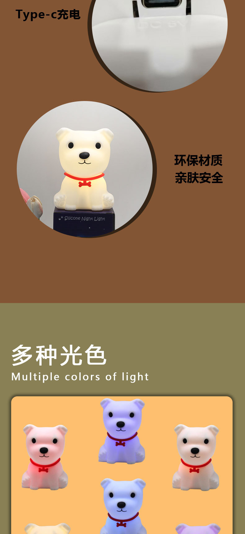 light color: puppy soft warm light, puppy colorful light