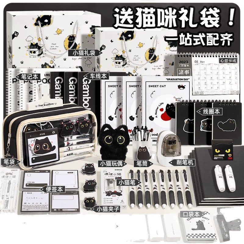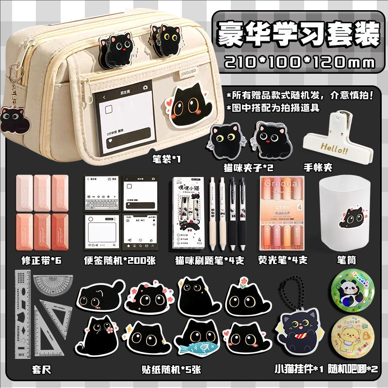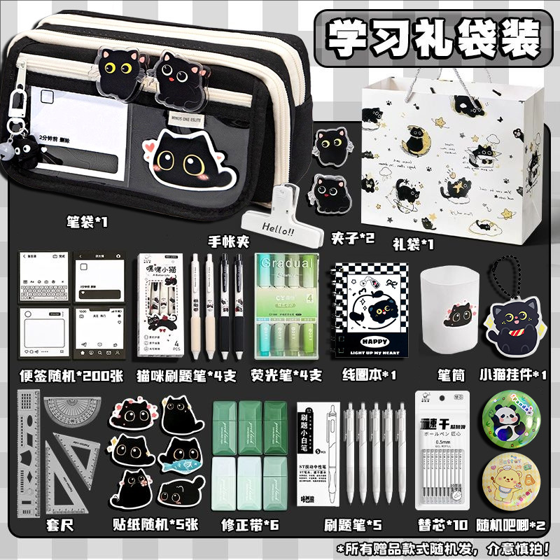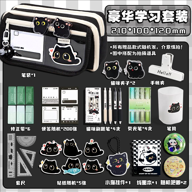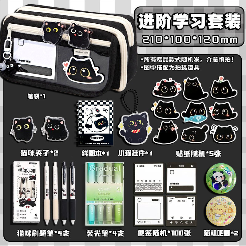 black pencil case set 6 [cat luxury learning set]]
