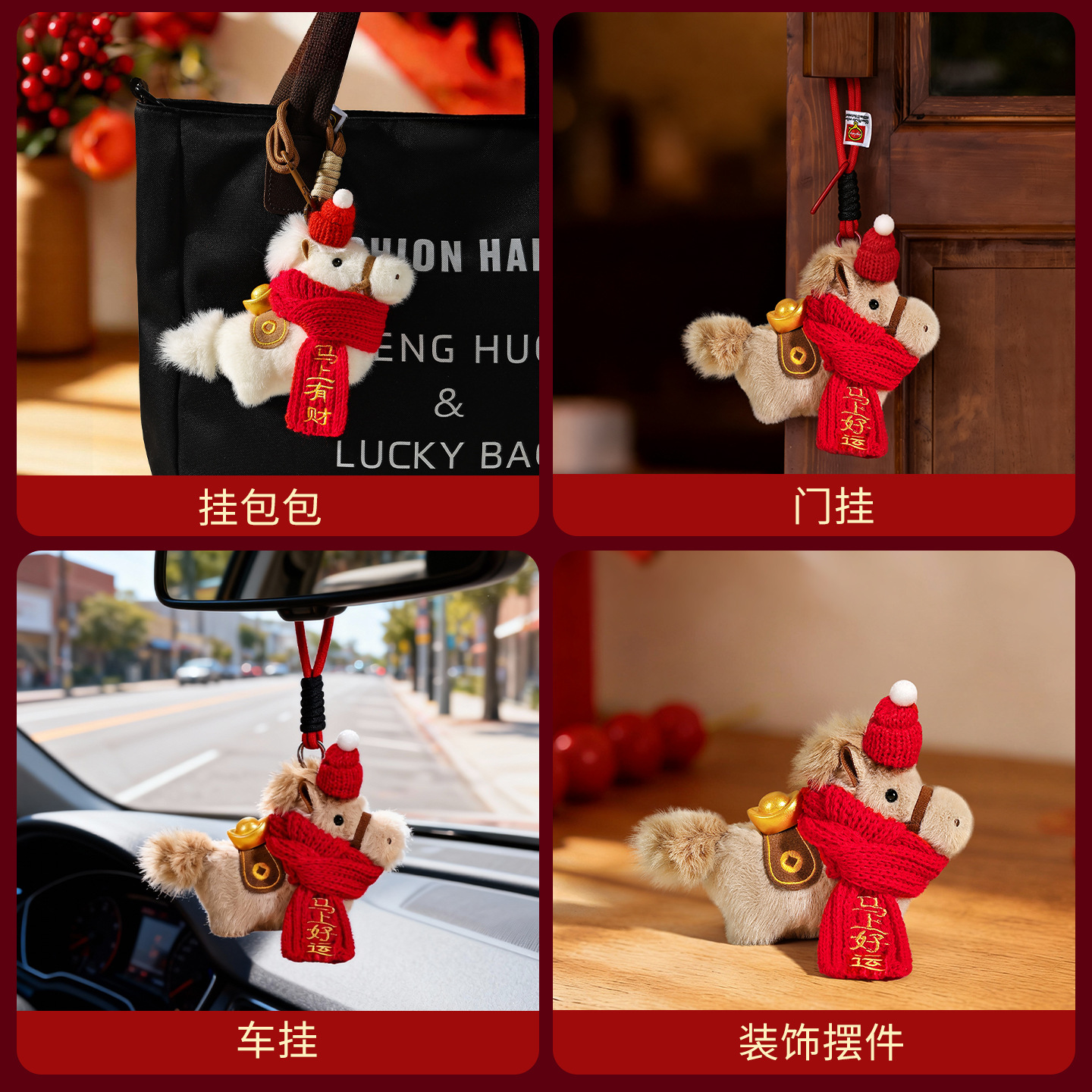 money-getting plush little horse pendant-love scarf brown (lanyard + free hanging buckle)