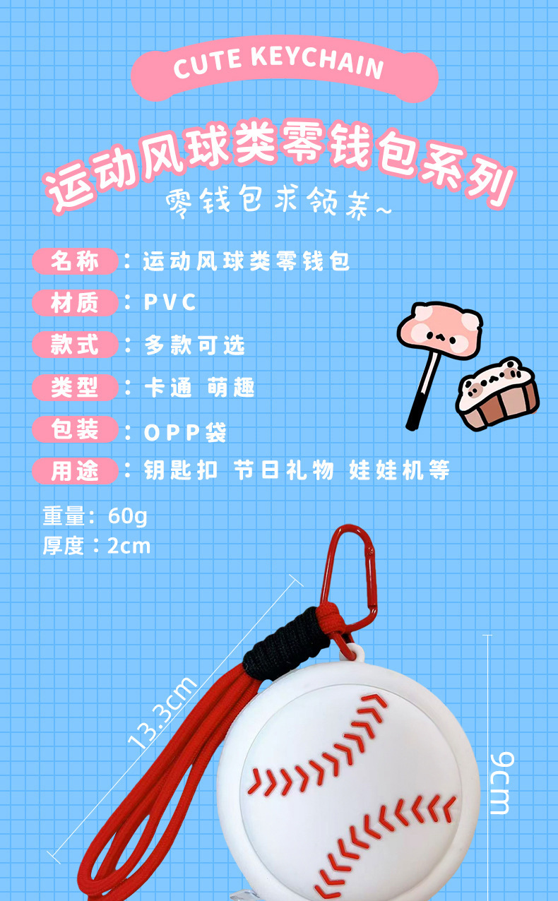 baseball – cute sports-style coin purse charm