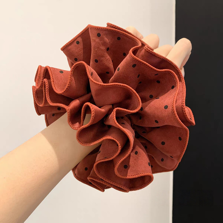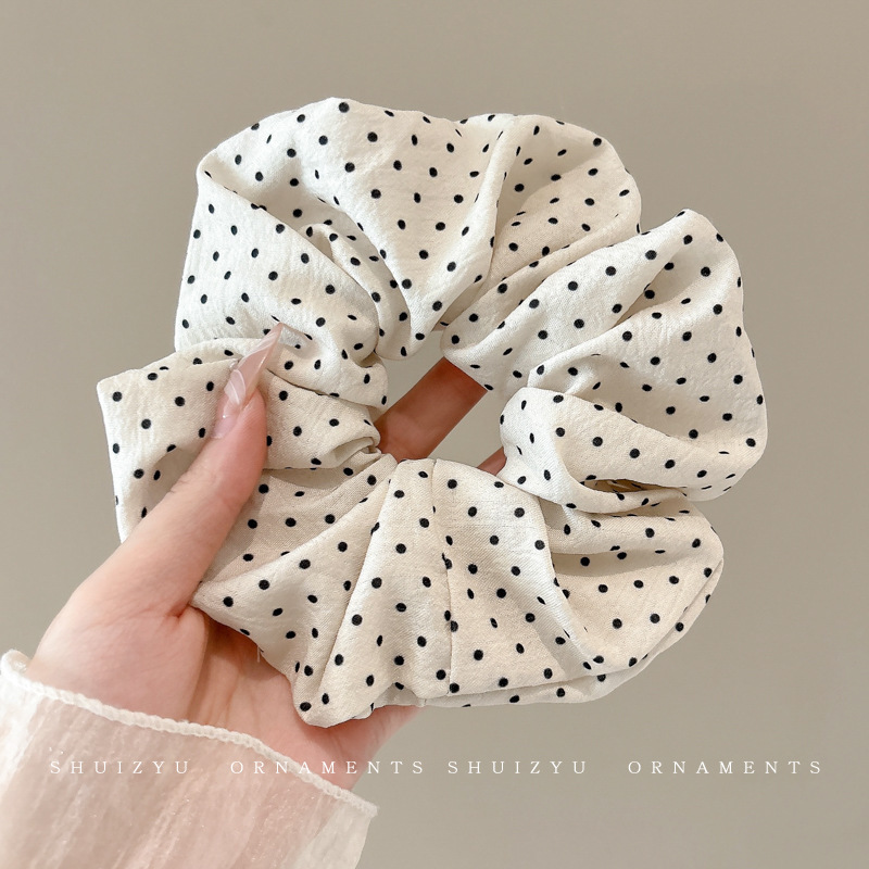 #1 double-layer ribbon black polka-dot hair tie – about 8cm in diameter, ribbons approximately 20cm long