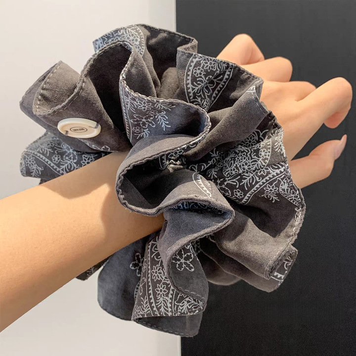 2# dark blue plaid square scarf hair ring about 24cm