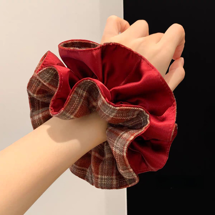 5# red gray plaid hair tie about 14cm