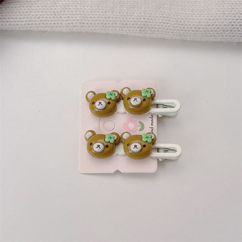 e2682 one pair of coffee-colored little bear duckbill clips