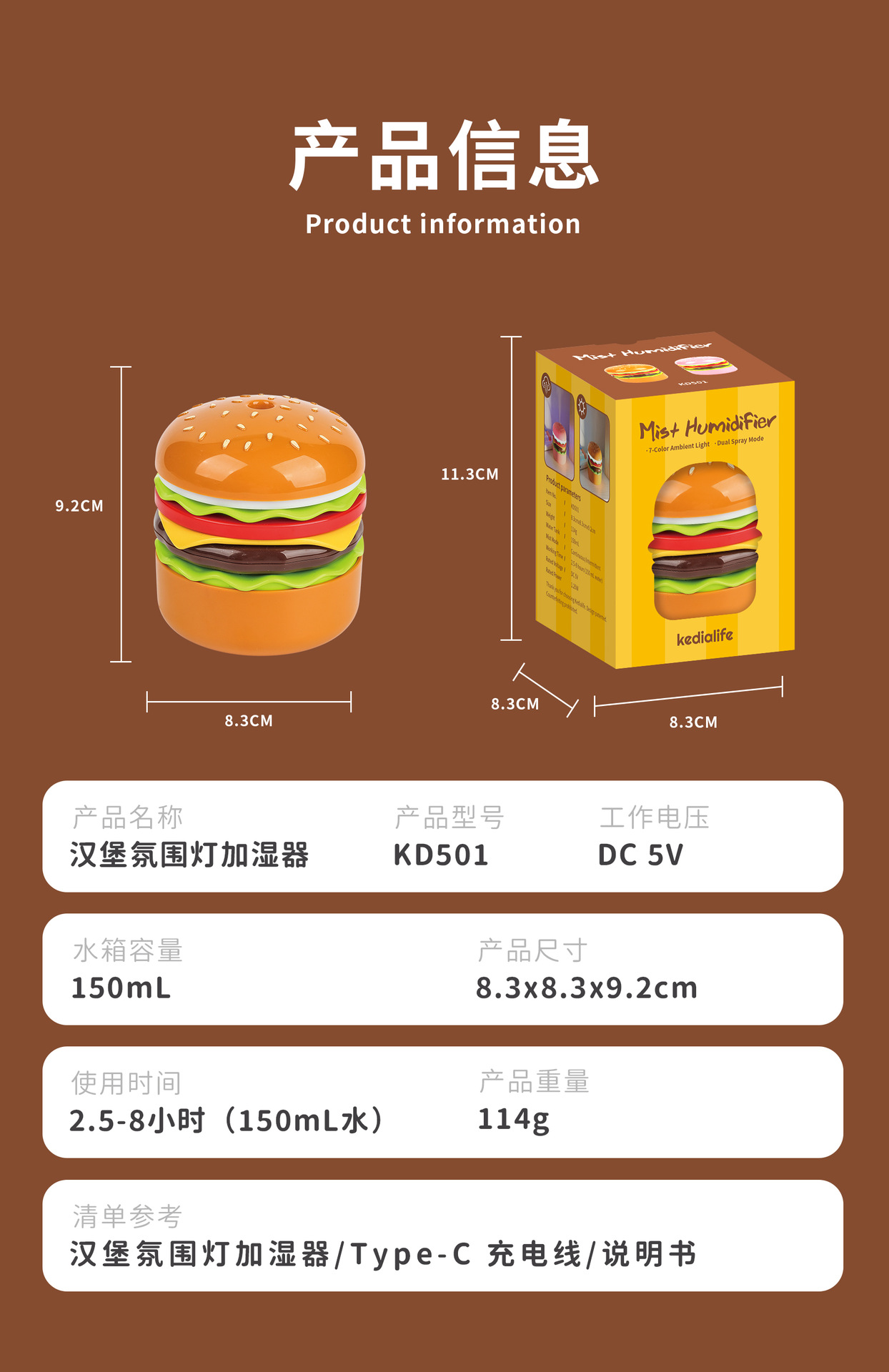 Hamburger Ambient Light Humidifier