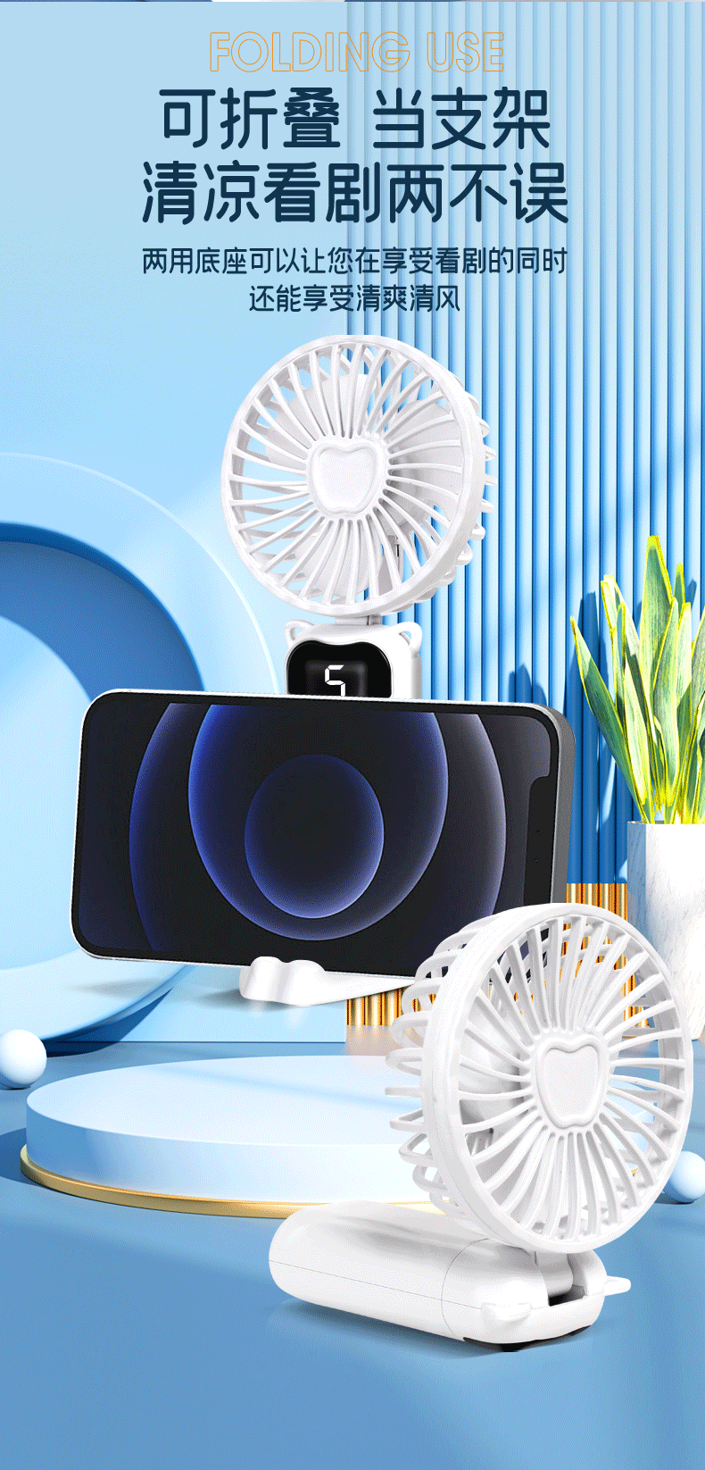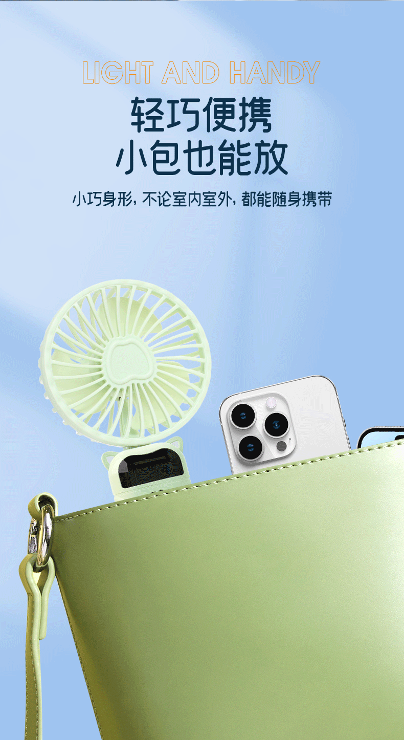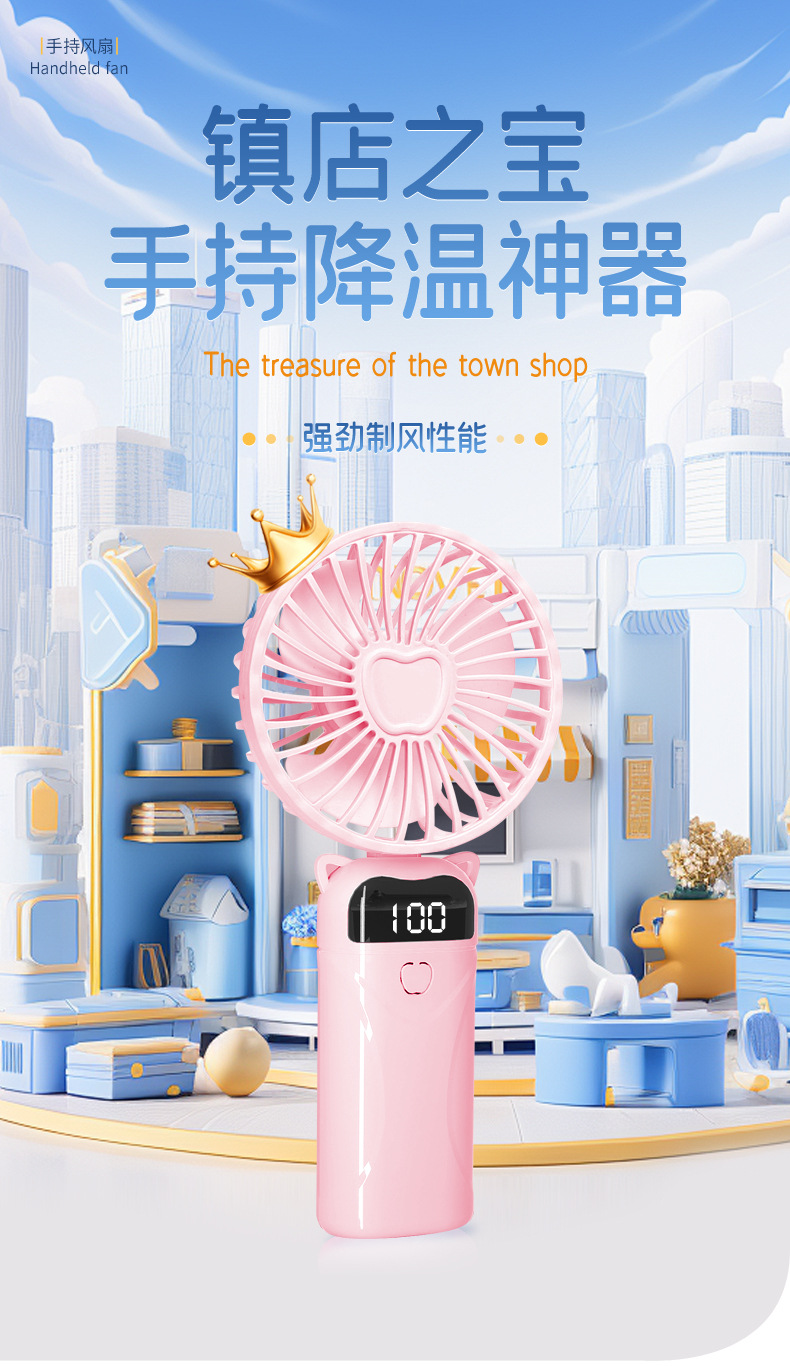 Cross-border new model N15 handheld fan mini portable desktop USB charging folding digital neck fan