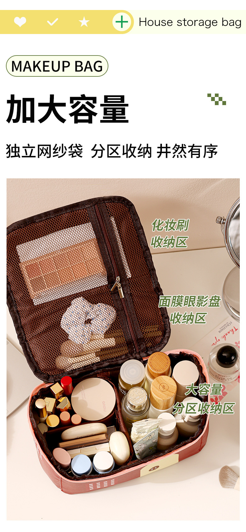 house cosmetic bag [coffee-color]