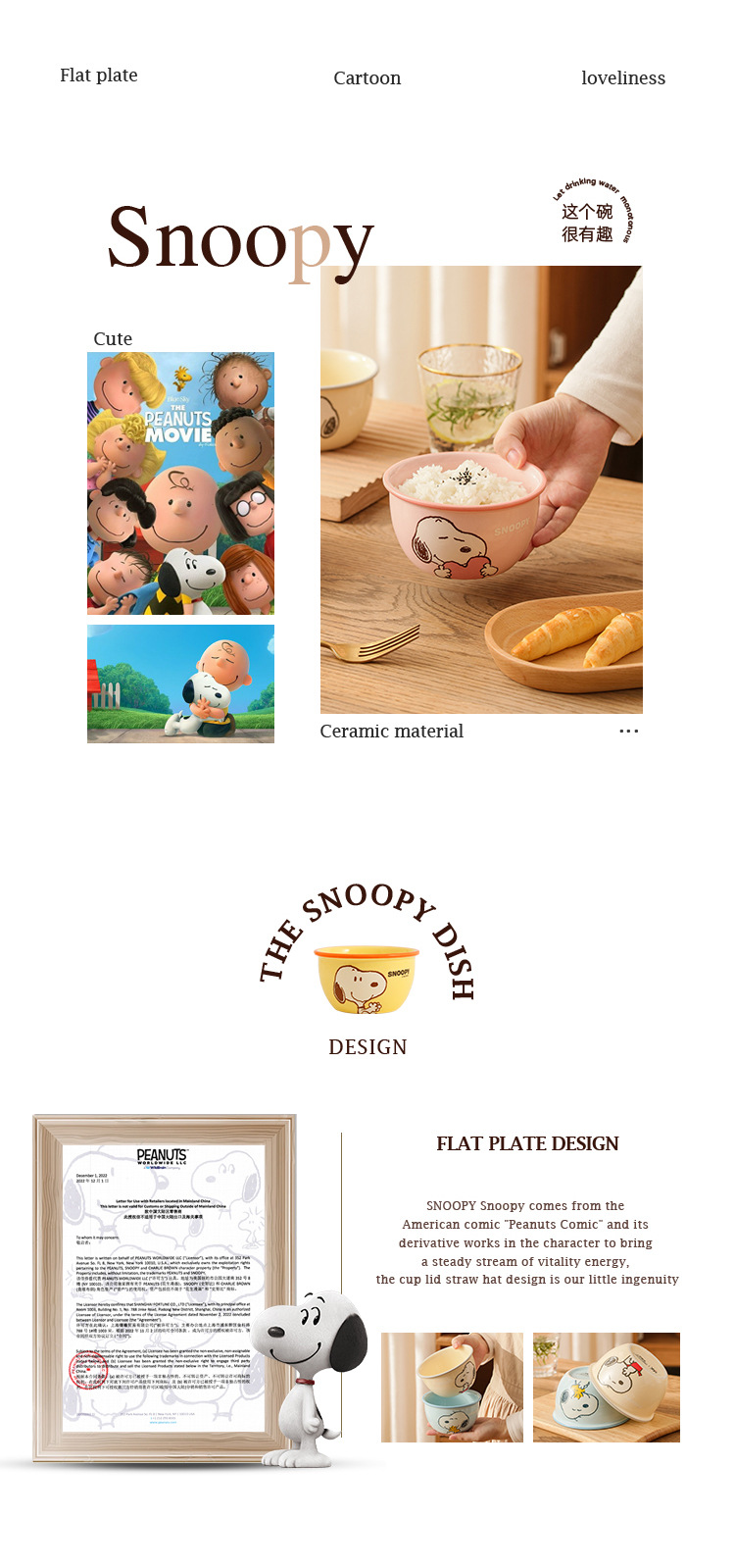 snoopy ceramic rice bowl home cartoon cute bowl set gift box tableware gift gift cute