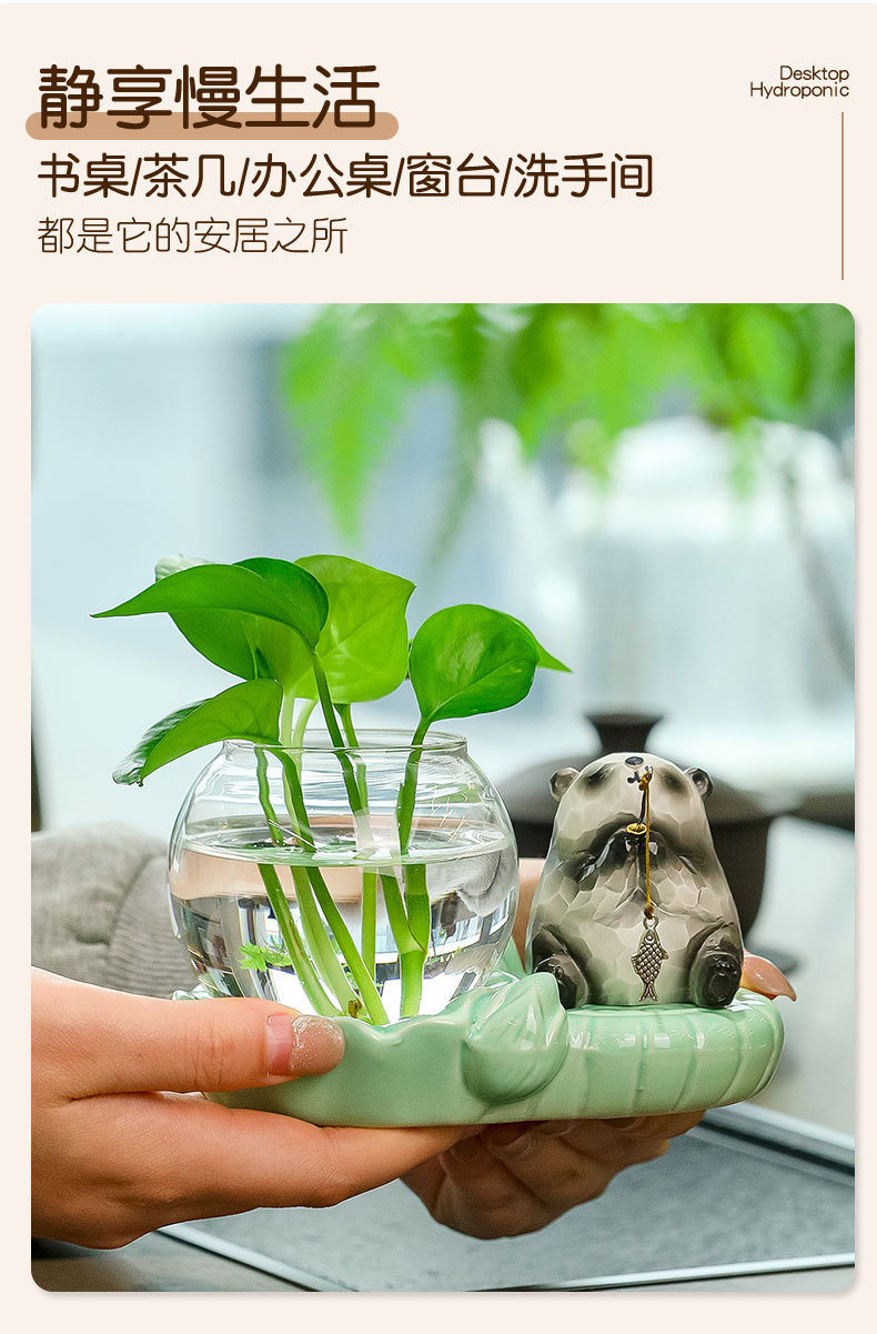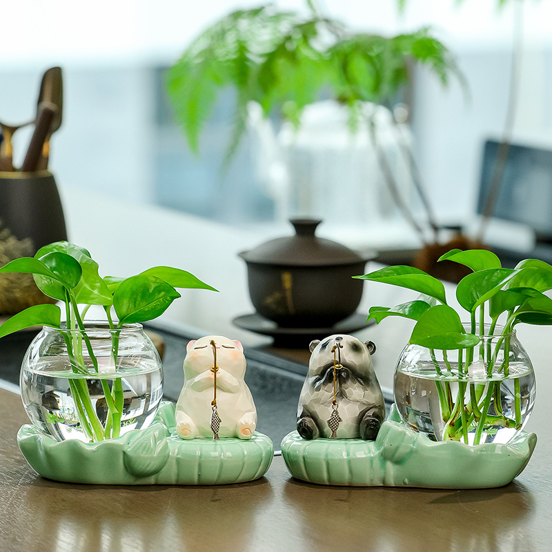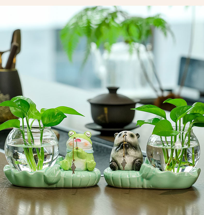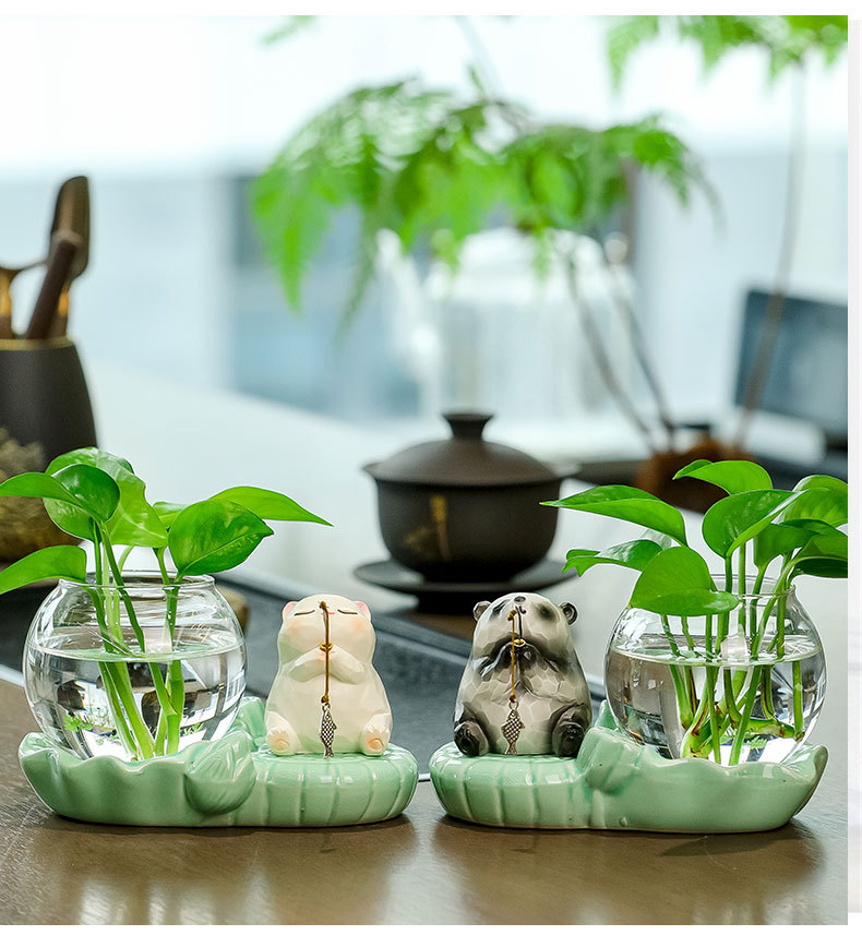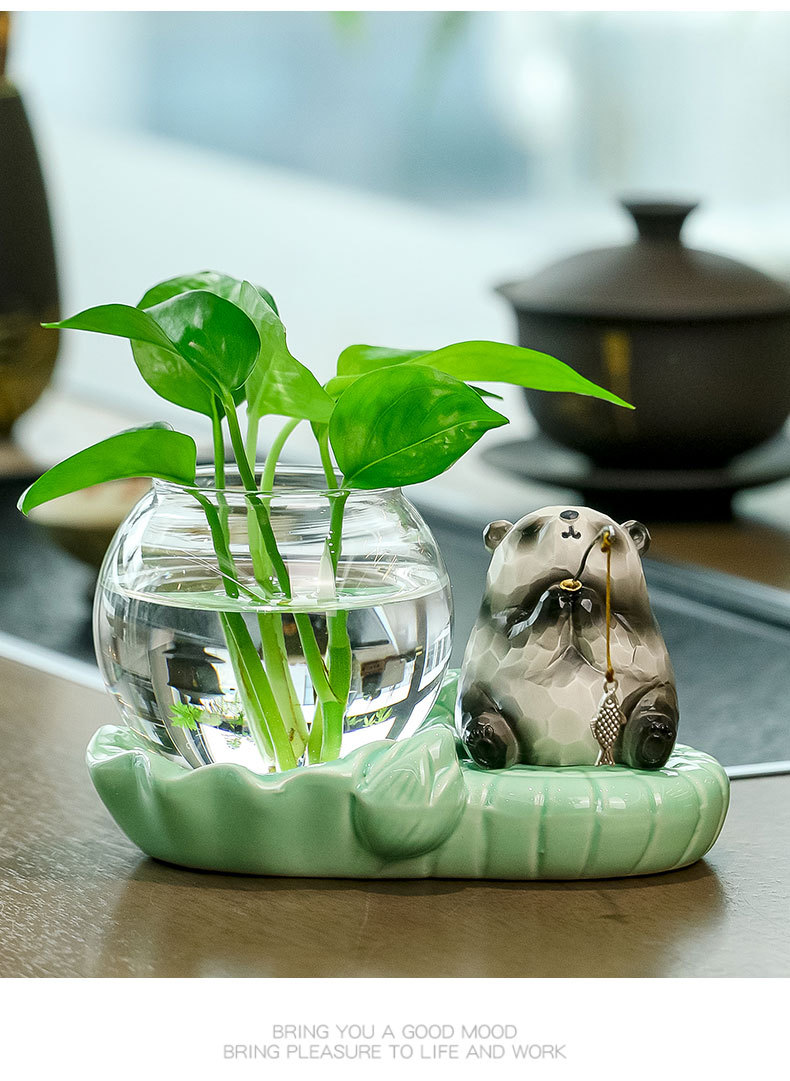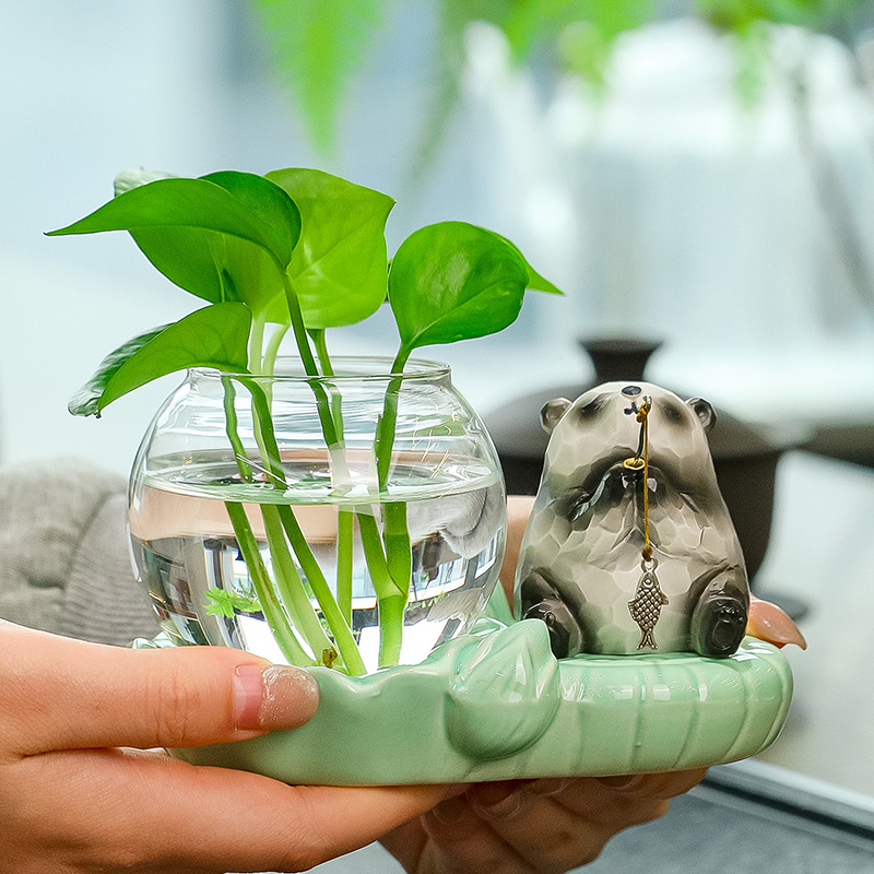 panda fishing + celadon hydroponic vase