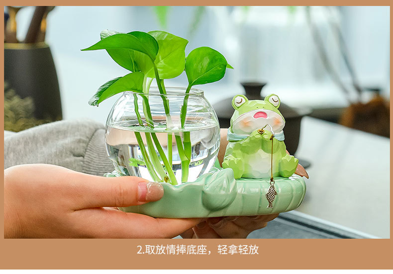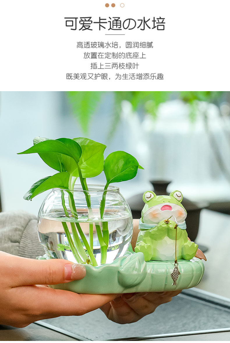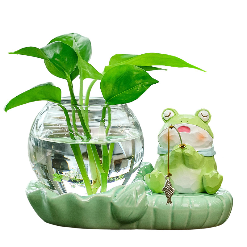 frog fishing + celadon hydroponic vase