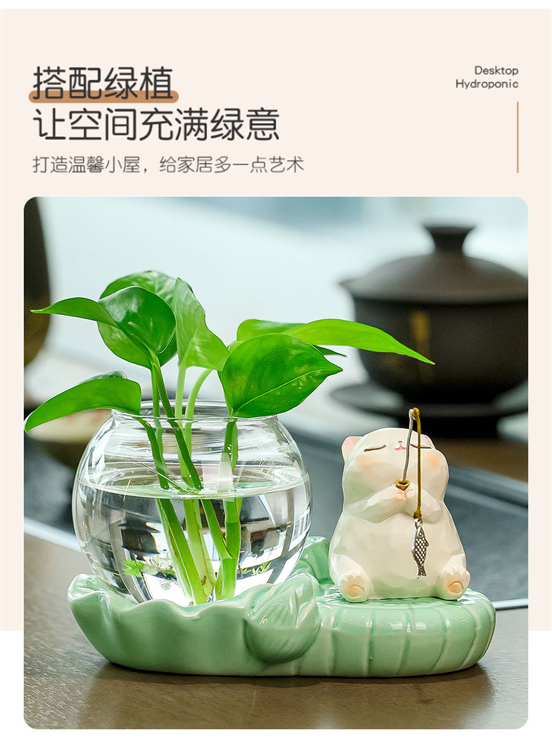 kitten fishing + celadon hydroponic vase