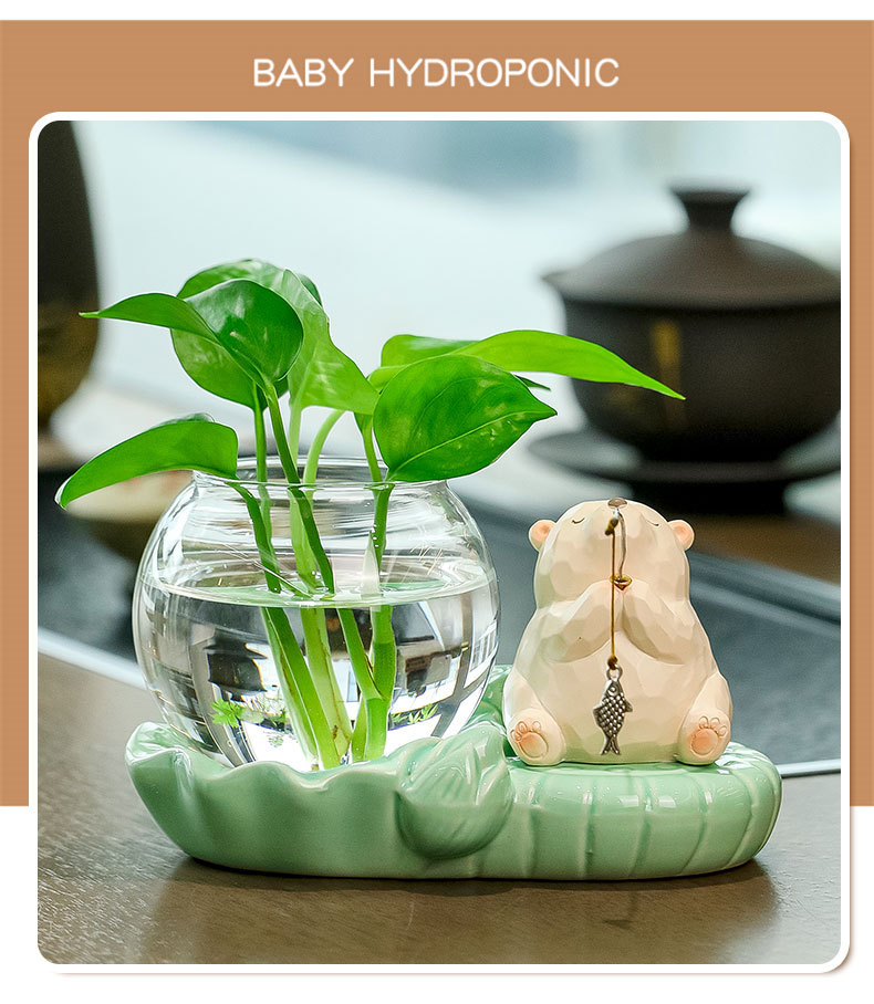 bear fishing + celadon hydroponic vase