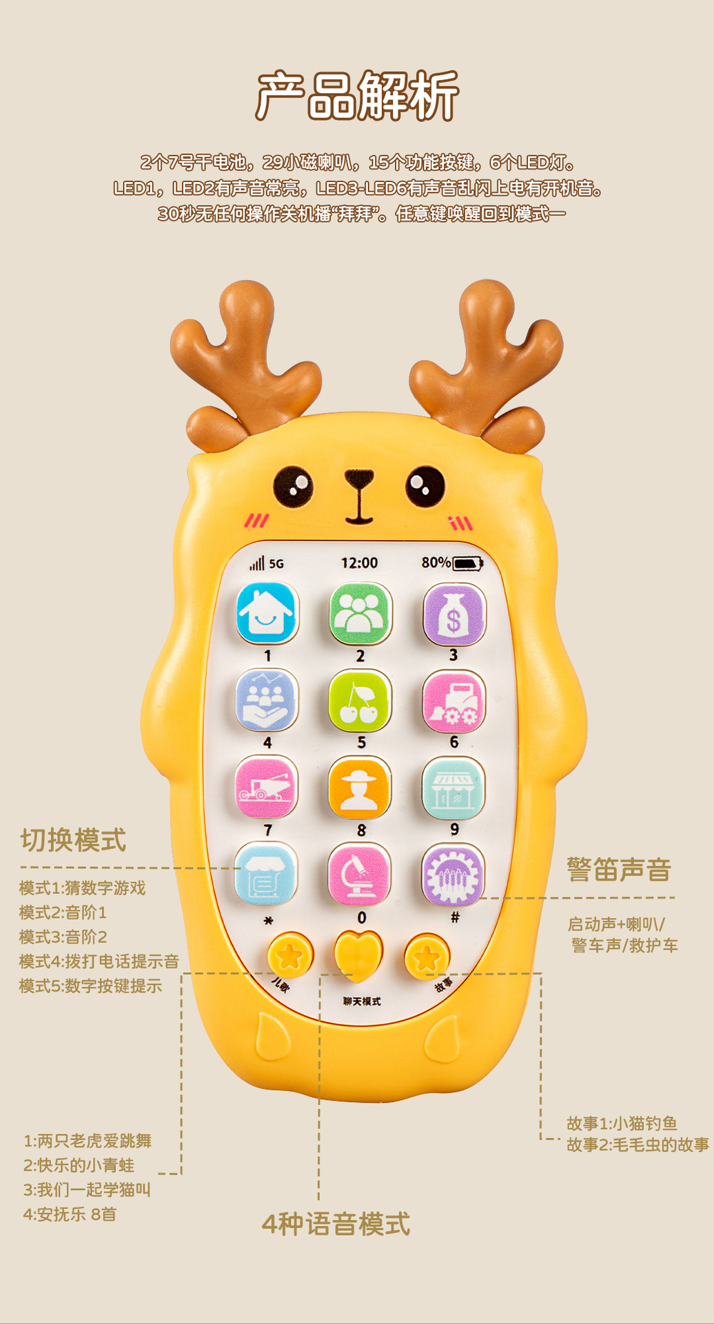 9905 [lemon yellow] deer music mobile phone