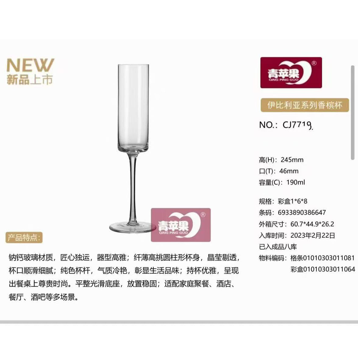 straight champagne glass (180ml)