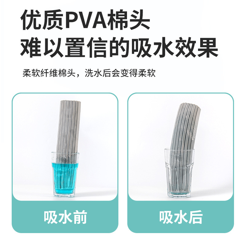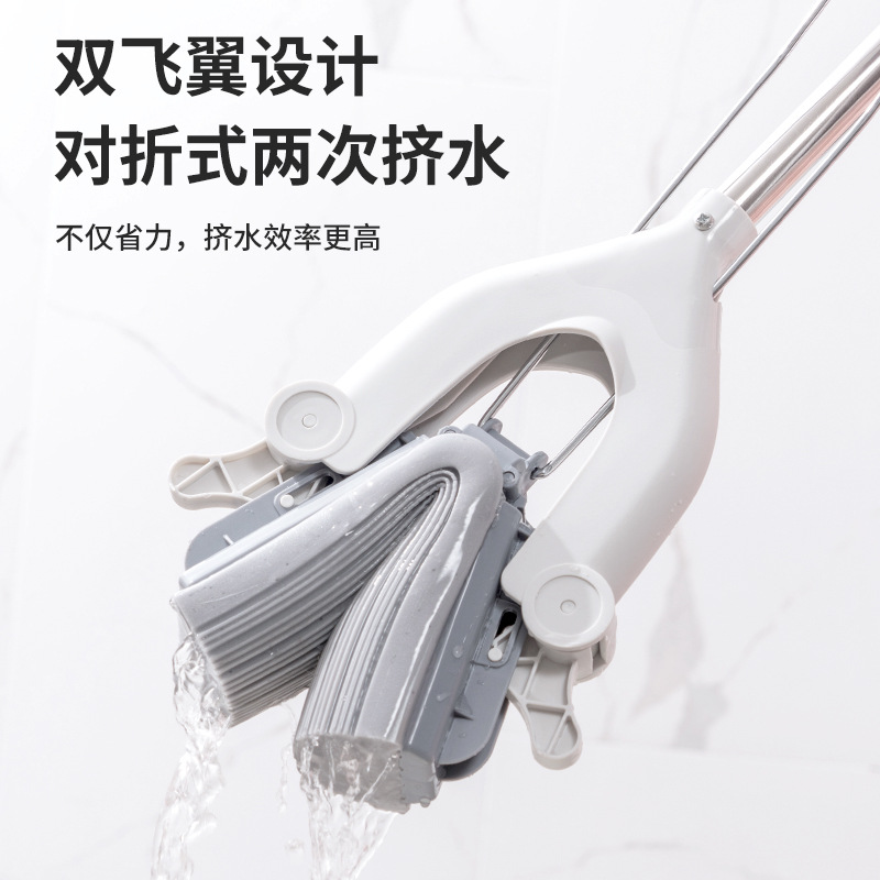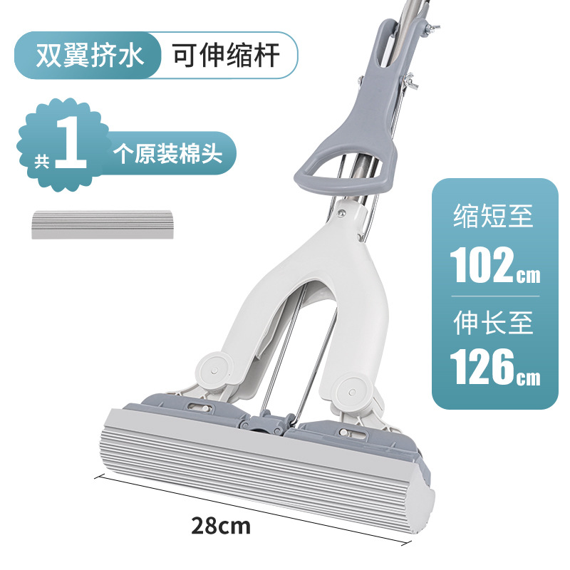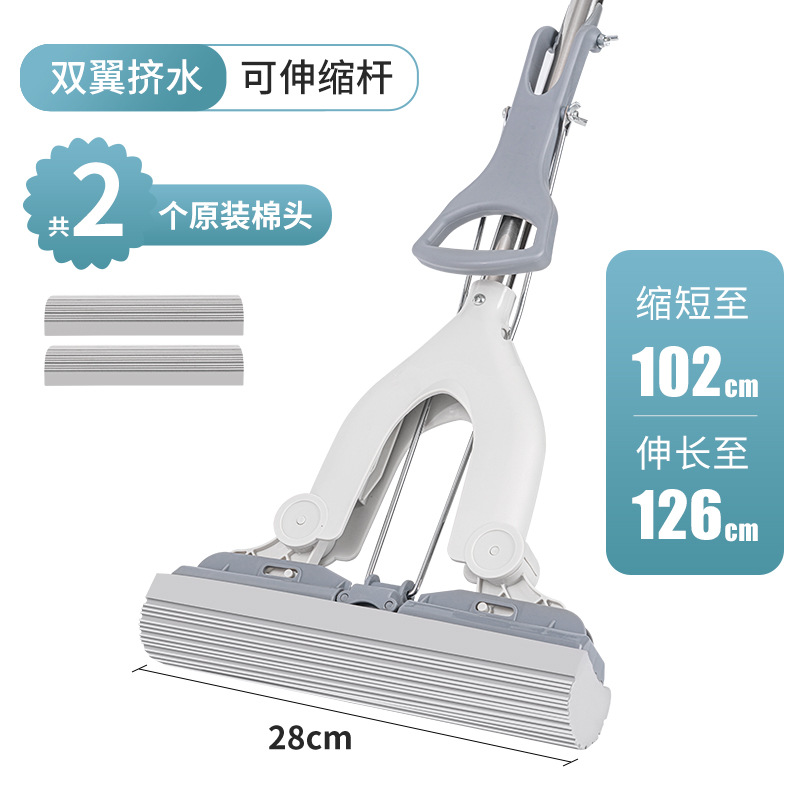 [upgrade double wings squeeze water] gray white, retractable stainless steel rod; 2 cotton heads in total