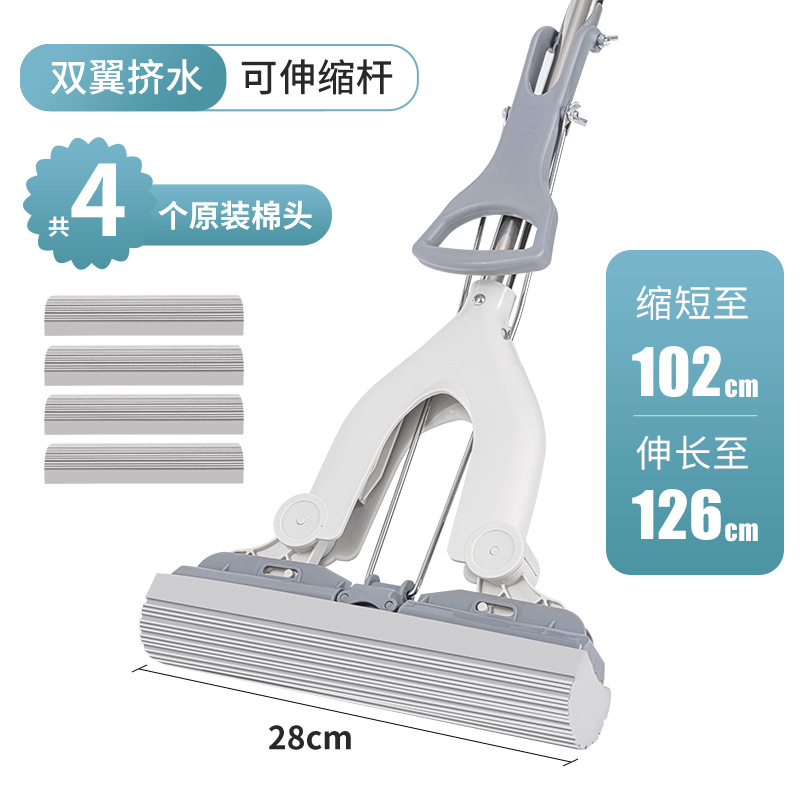 [upgrade double wings squeeze water] gray white, retractable stainless steel rod; 4 cotton heads in total