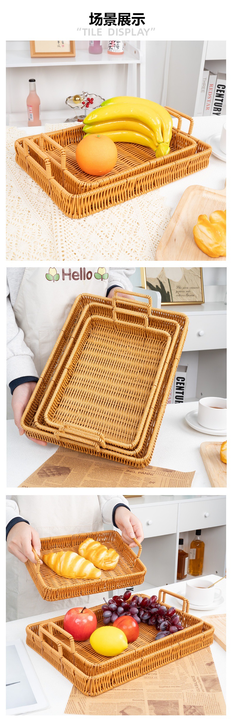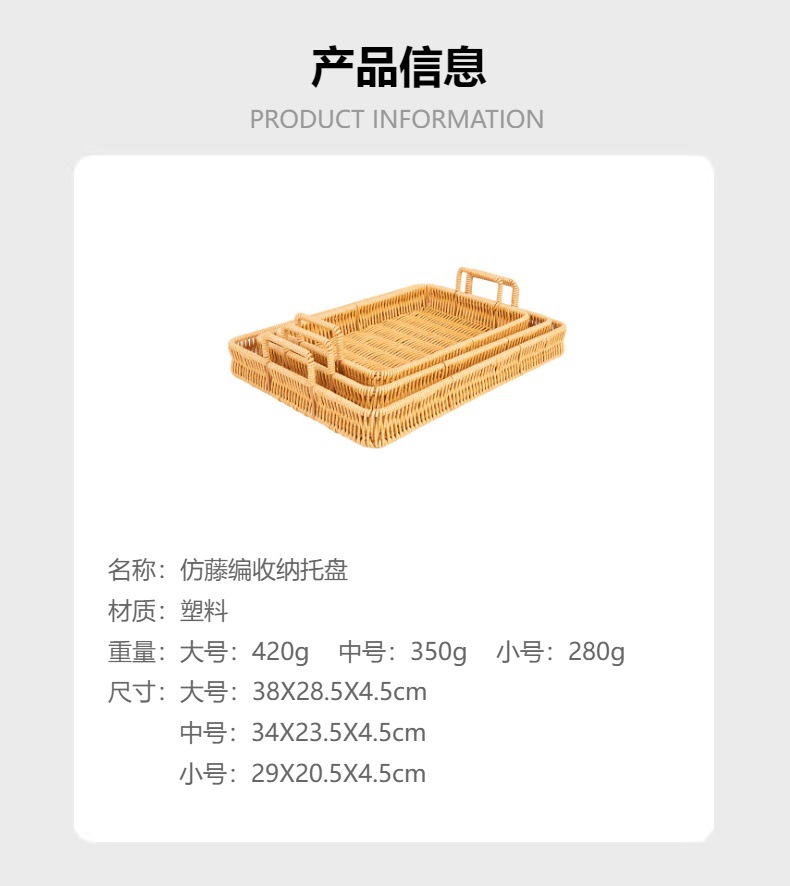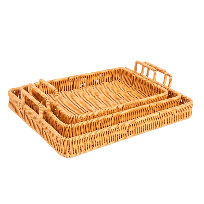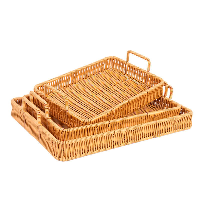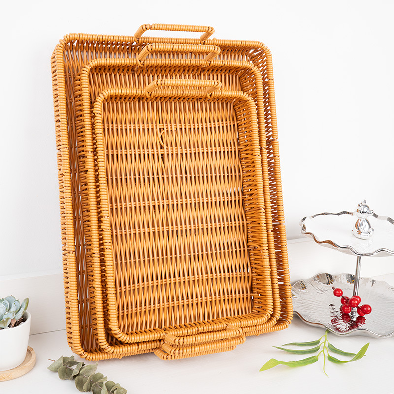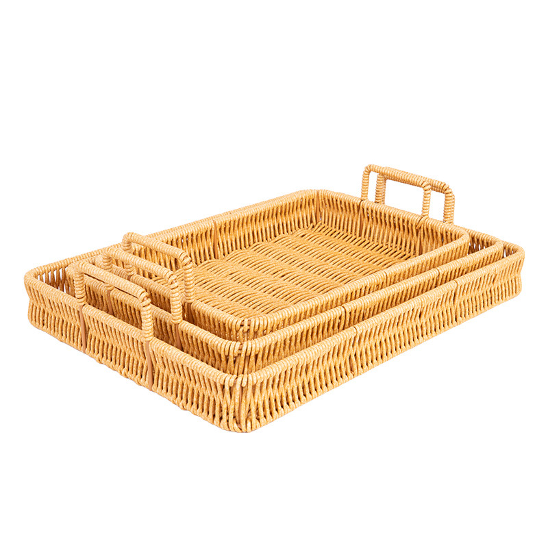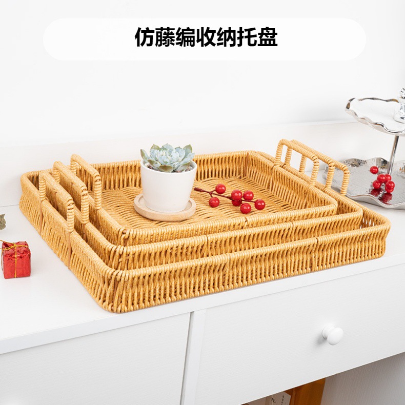 wholesale japanese-style faux rattan knitted storage tray, living room/dining room bread and dim sum plate, household fruit and steamed bun knitted basket