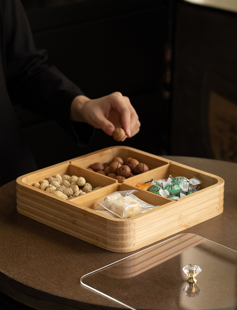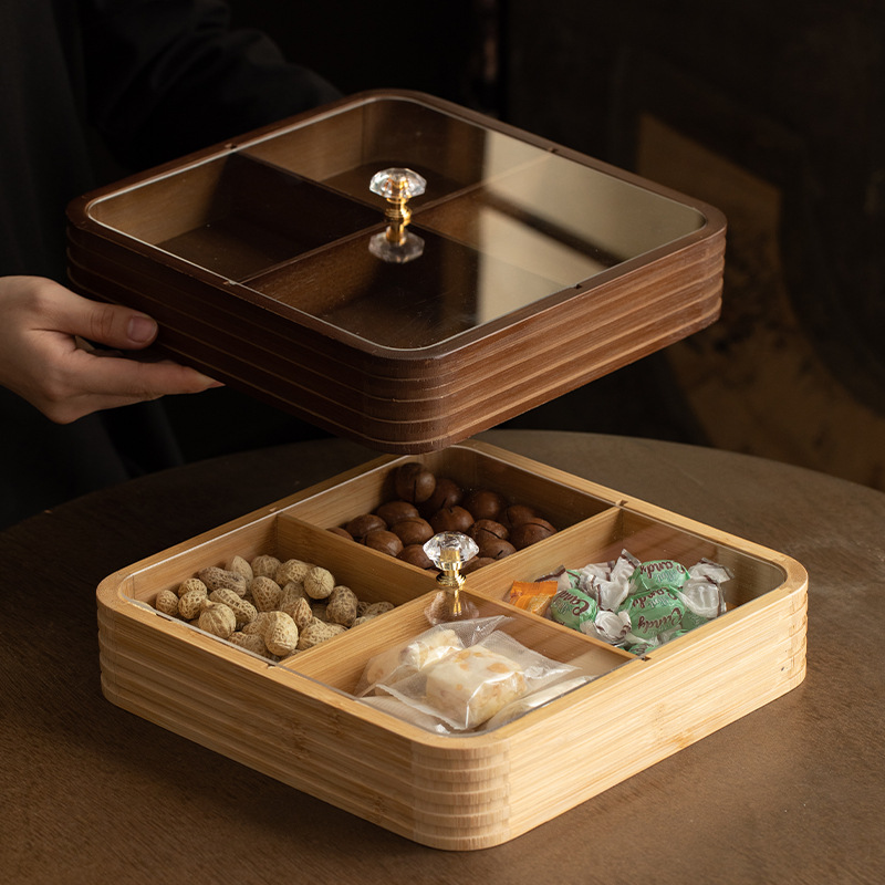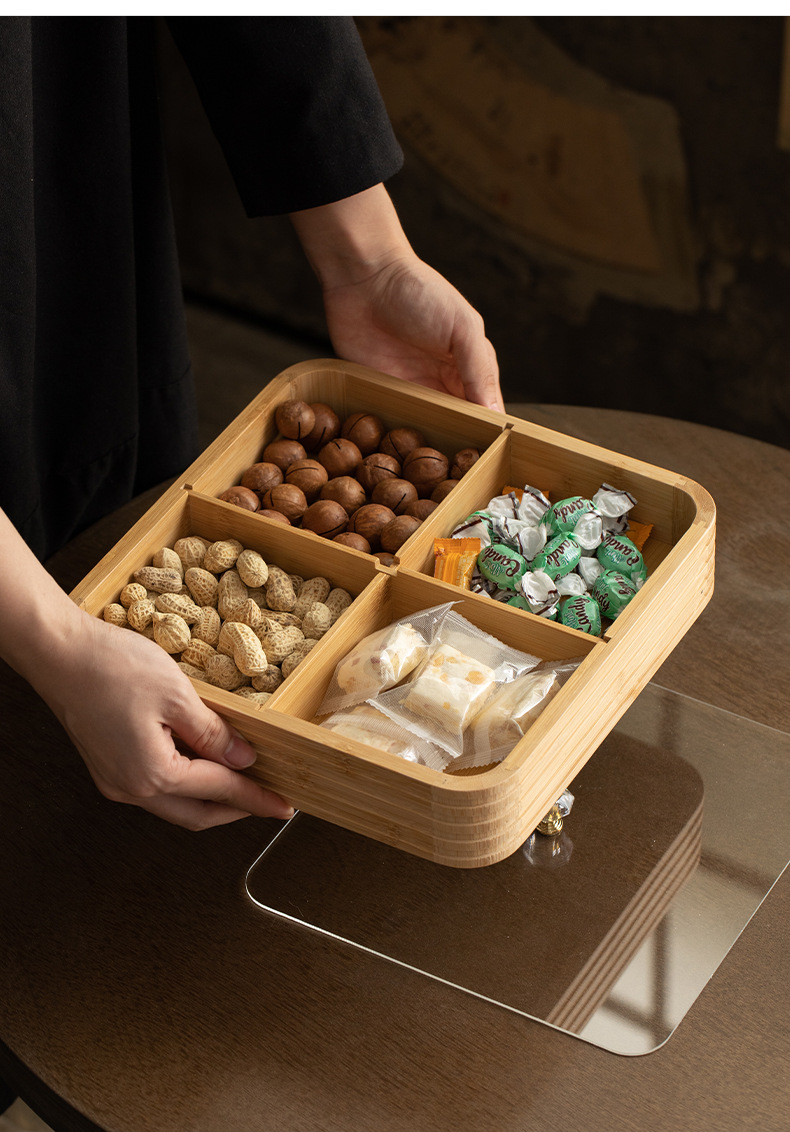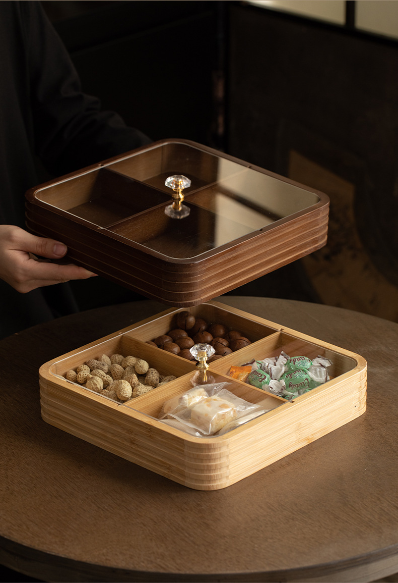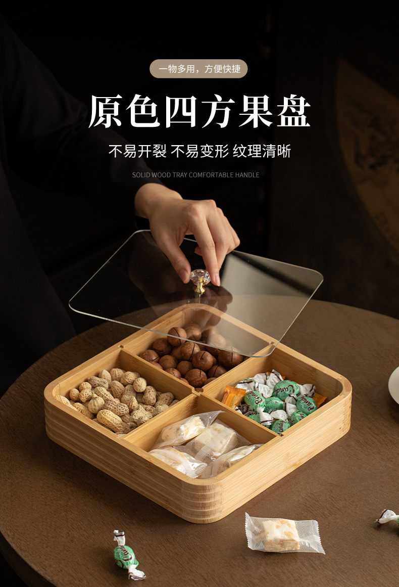 four grid line fruit plate natural color, four grid line fruit plate walnut color