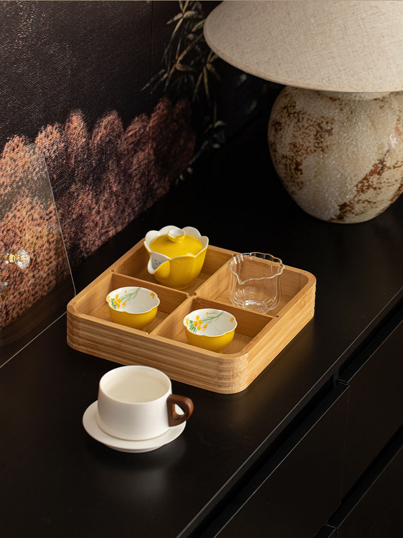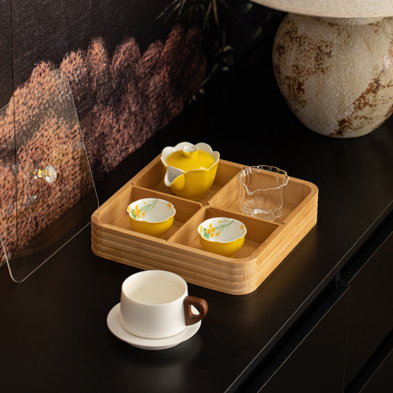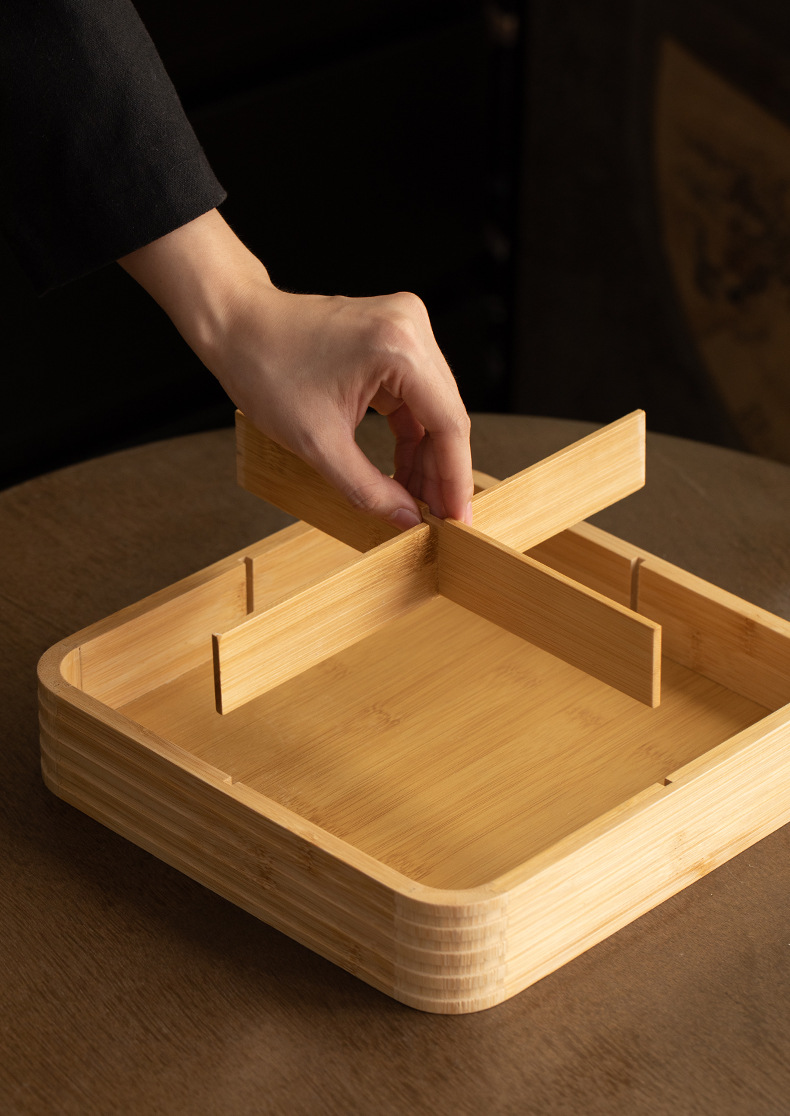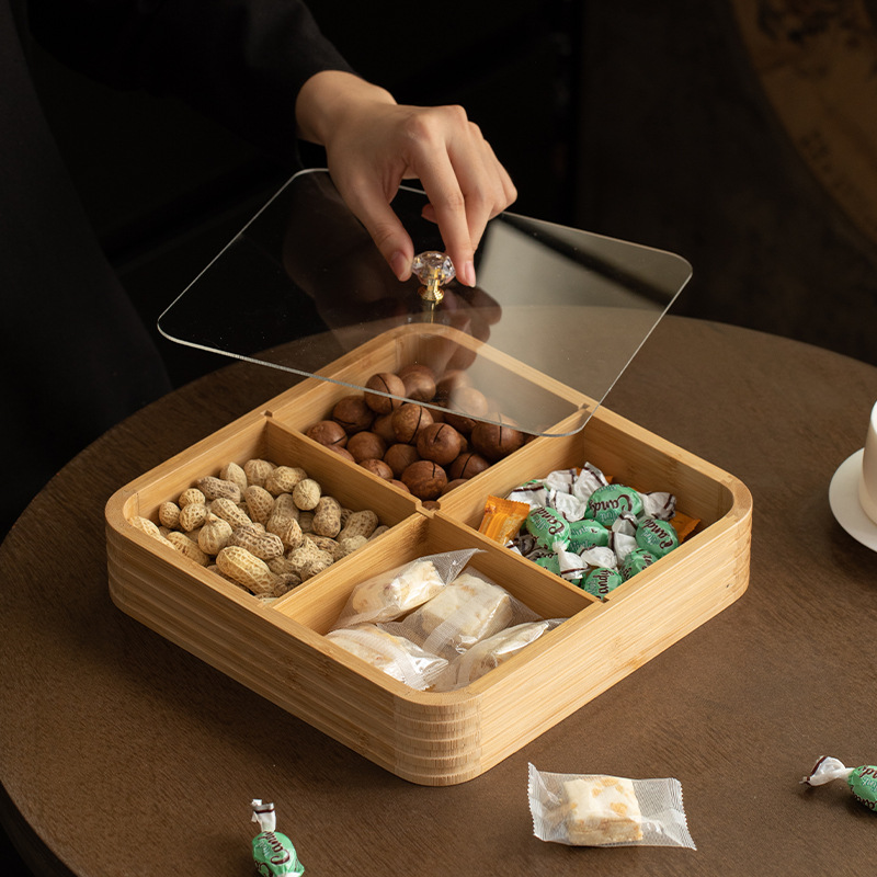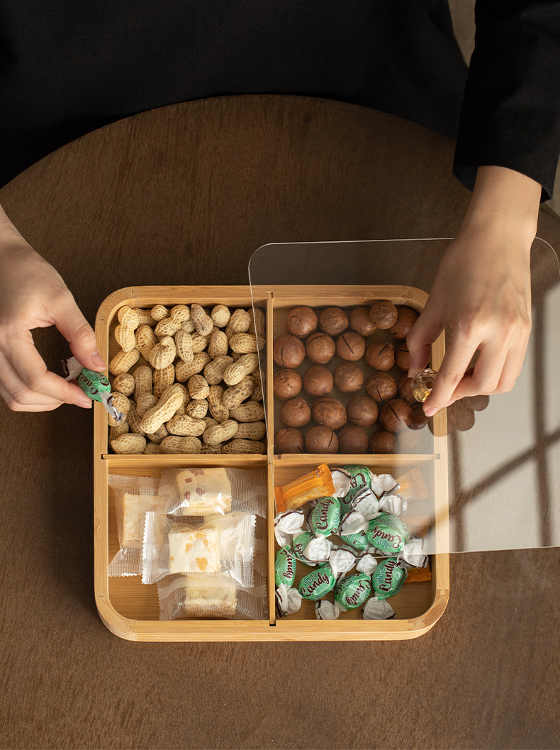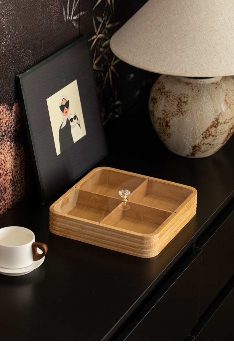 four grid line fruit plate natural color, four grid line fruit plate walnut color