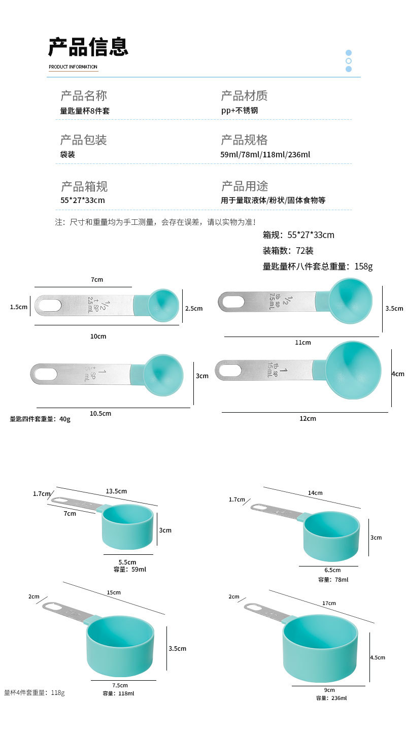 green-8-piece measuring cup measuring spoon