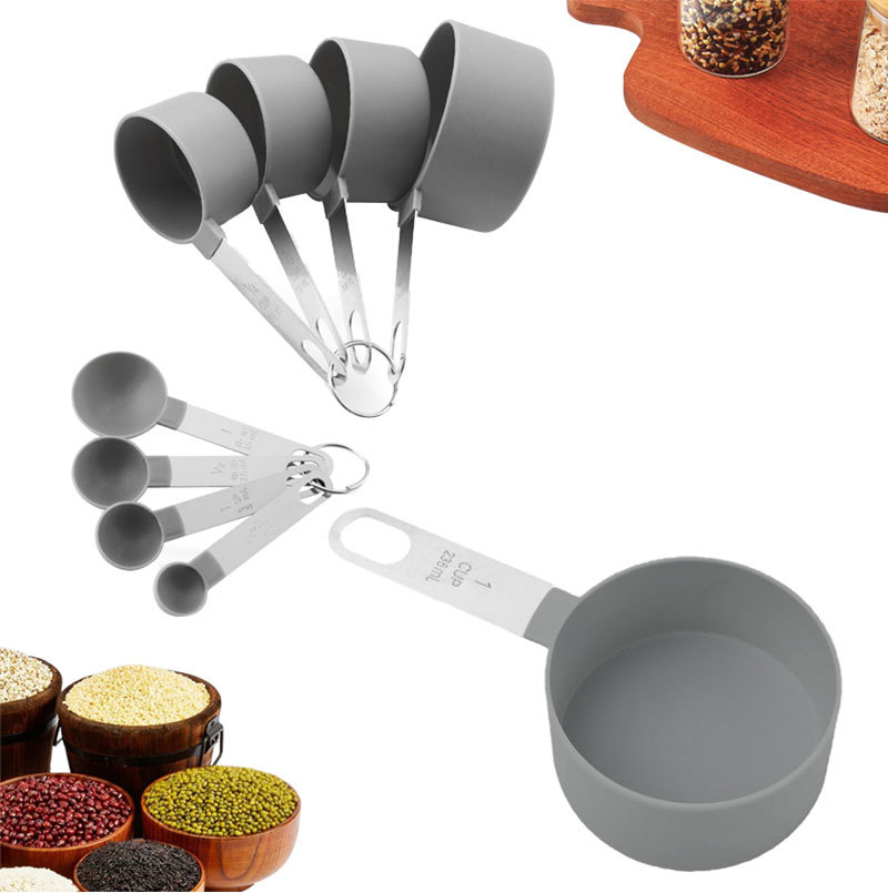 gray-8-piece measuring cup and spoon set