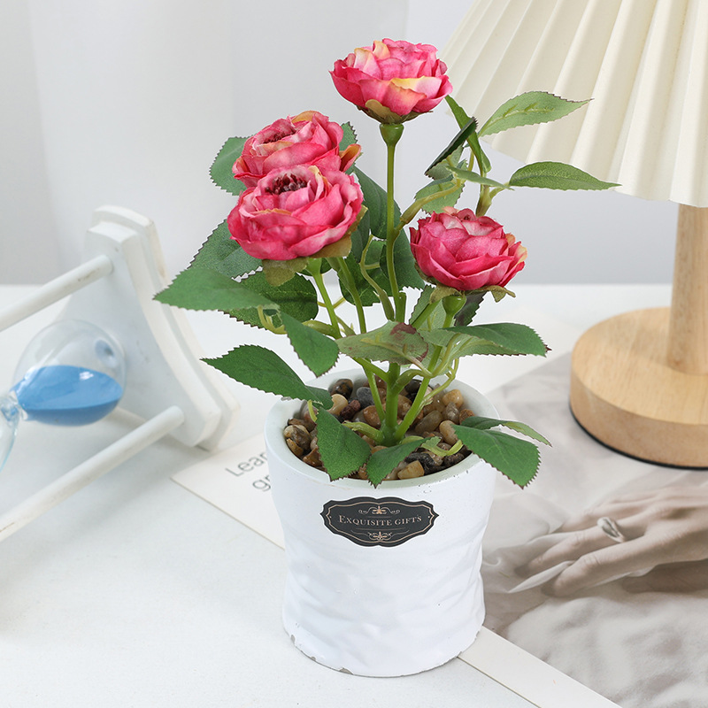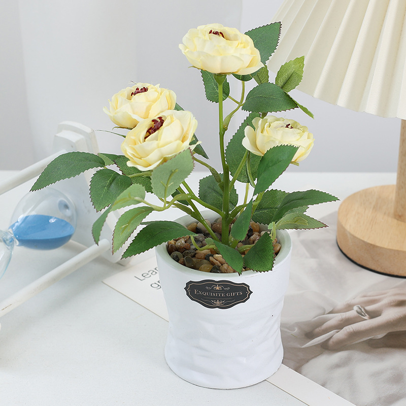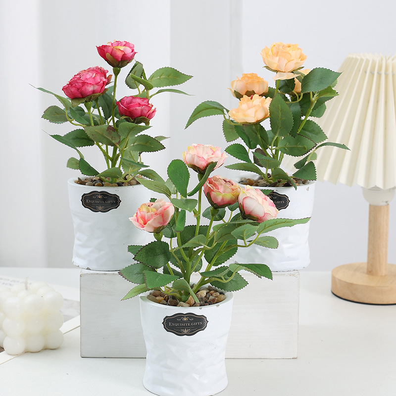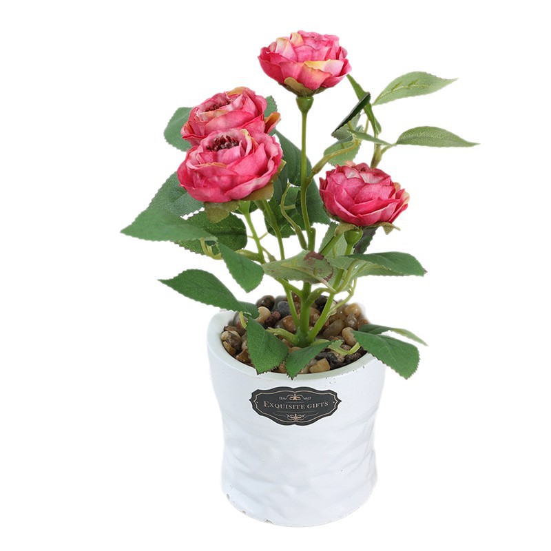 Height: 21cm, Vase Height: 8cm, Mouth Diameter: 8cm, 4 Camellia Flowers, Flower Head Diameter: 4.5cm, Net Weight: 336g. 120 boxes per piece, Size: 69*44*59. Single inner box, Size: 8*8*19.