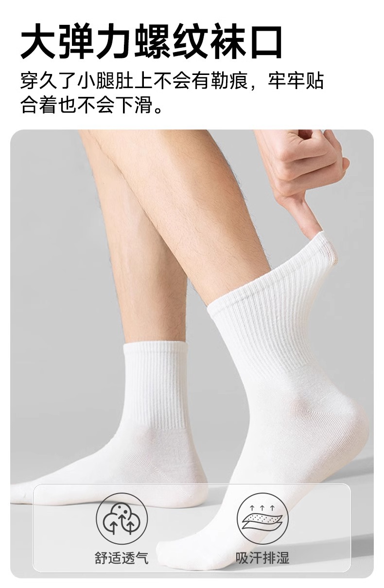 pure white [middle tube cotton socks 7 pairs] sweat-absorbent and breathable