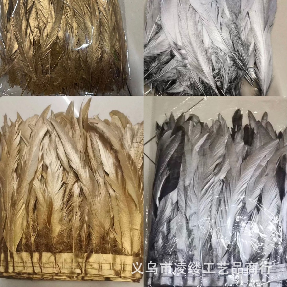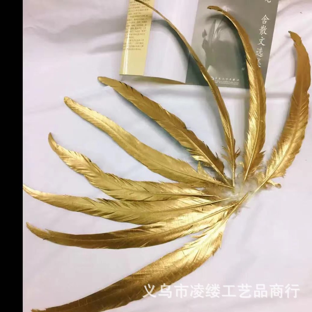 Gold and silver sprayed chicken tail feathers