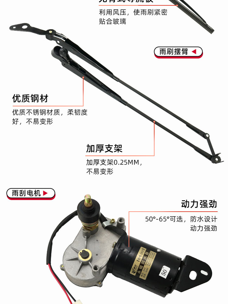500 length wiper blade + swing arm +50 degree wiper motor