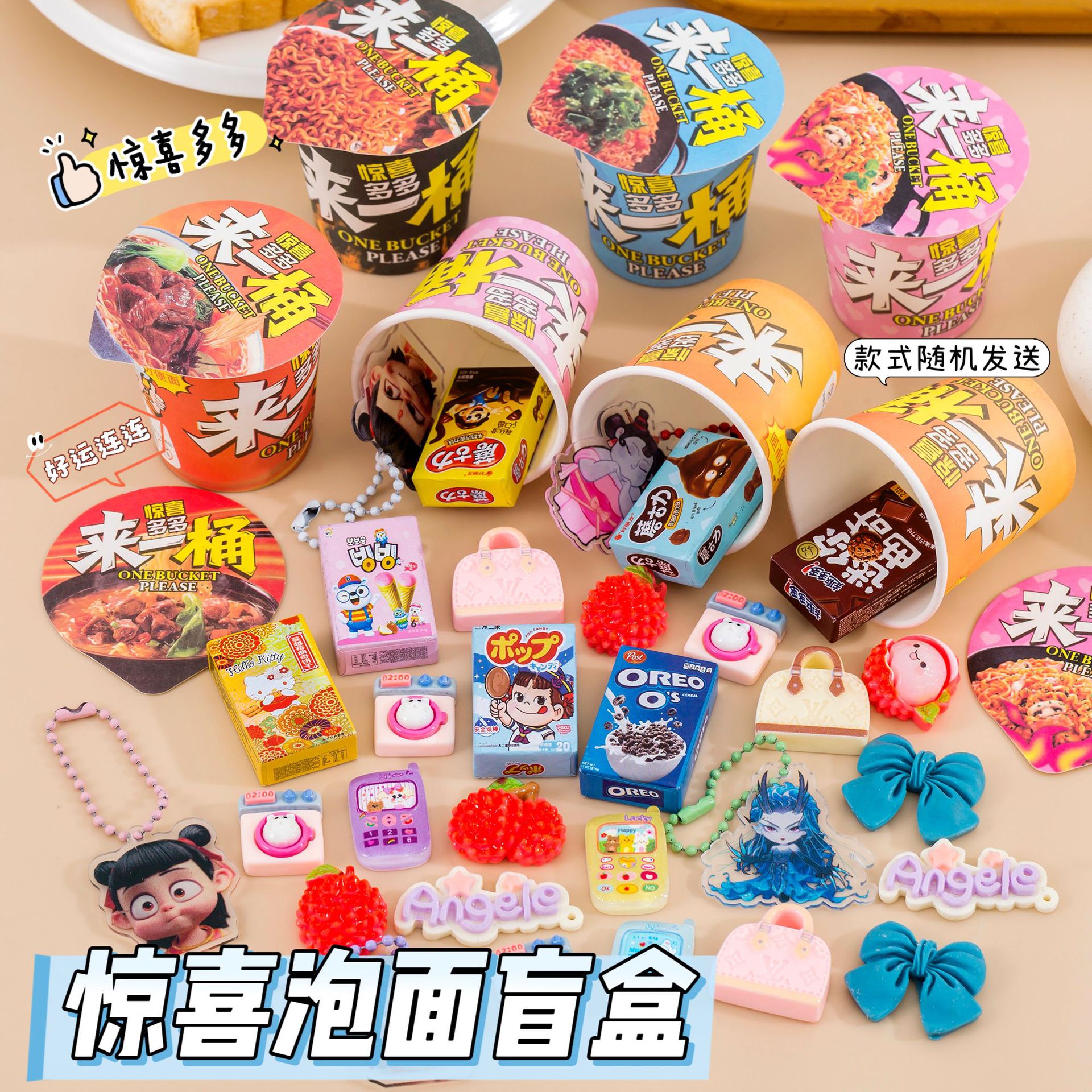 simulation instant noodles to a bucket of blind box bowl noodles ramen pendant candy toy hanging decoration simulation square stool candy toy blind box