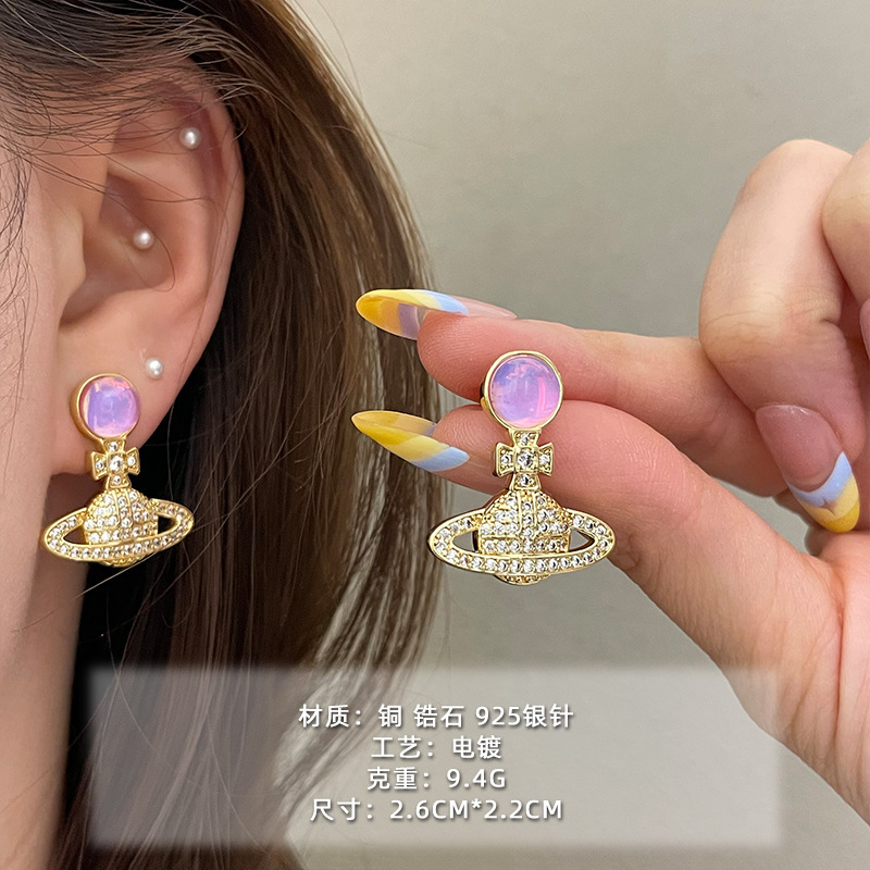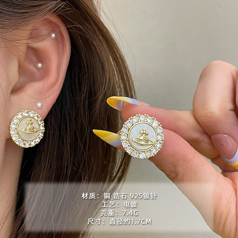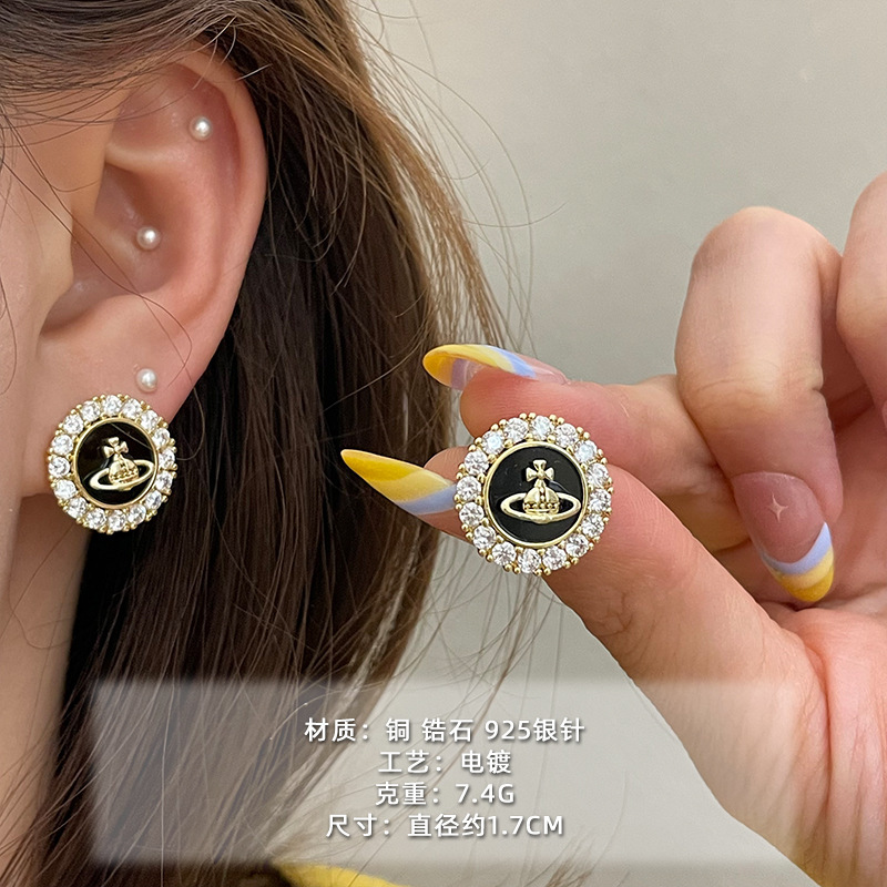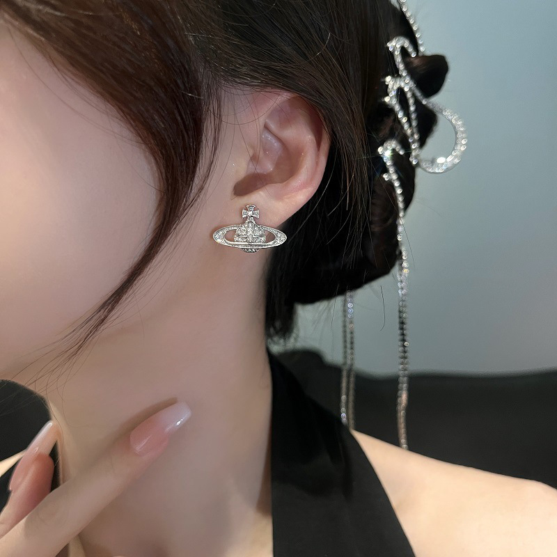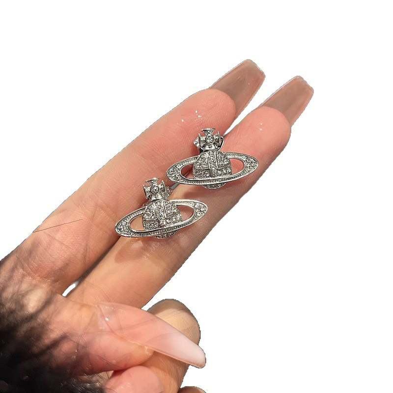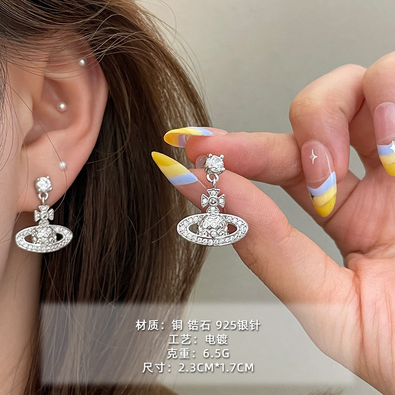 1613 silver micro rhinestone planet 925 silver needle