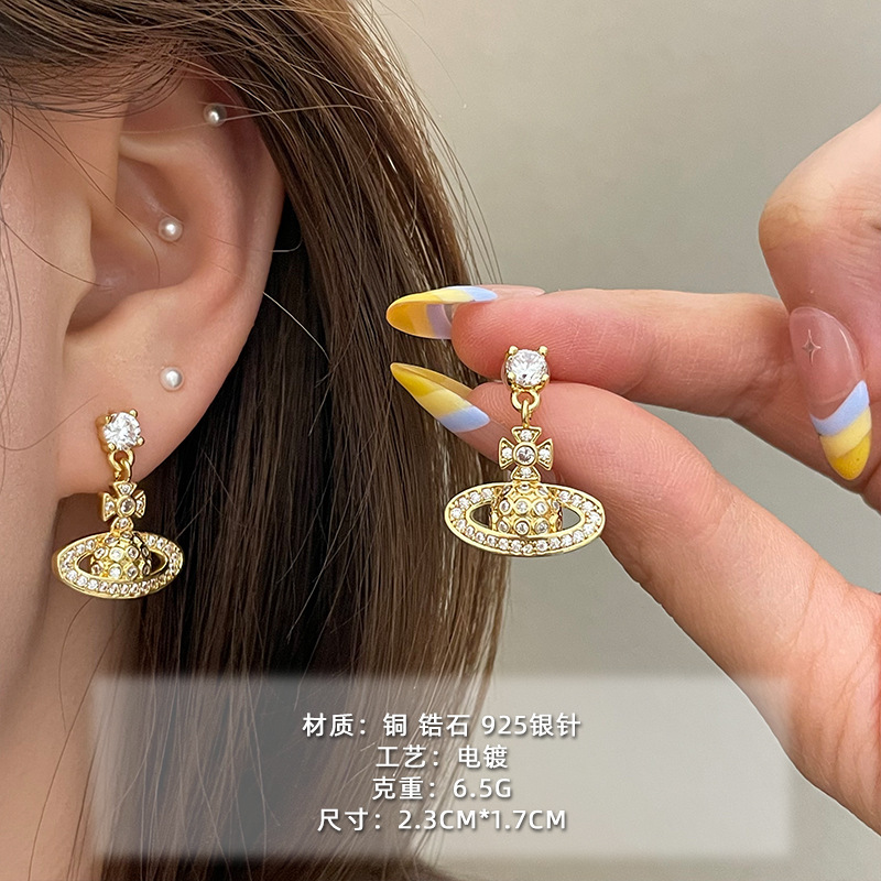 1613 golden micro rhinestone planet 925 silver needle