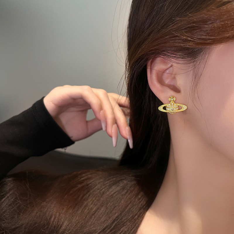 1614 electroplated gold-colored saturn pin studs [copper micro-inlaid zirconium style]