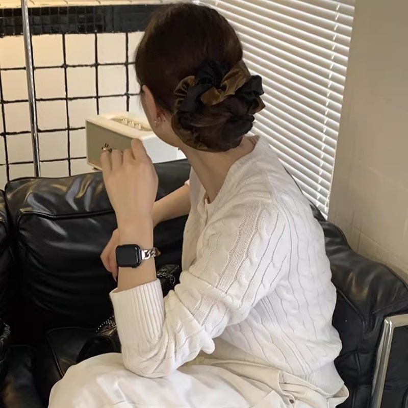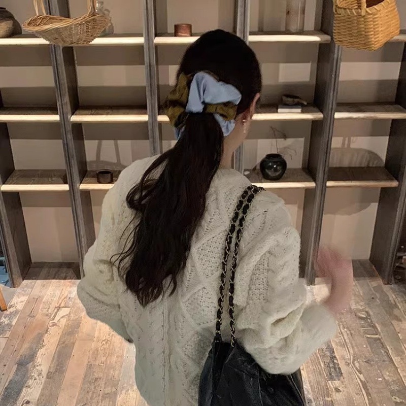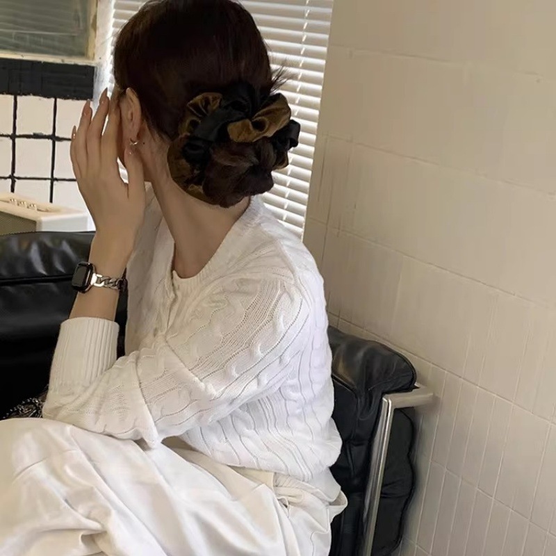 korean style large size color-blocking satin intestine hair tie women's high-end hair rope hair tie intestine ring idle style leather case