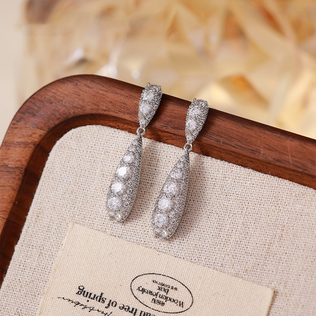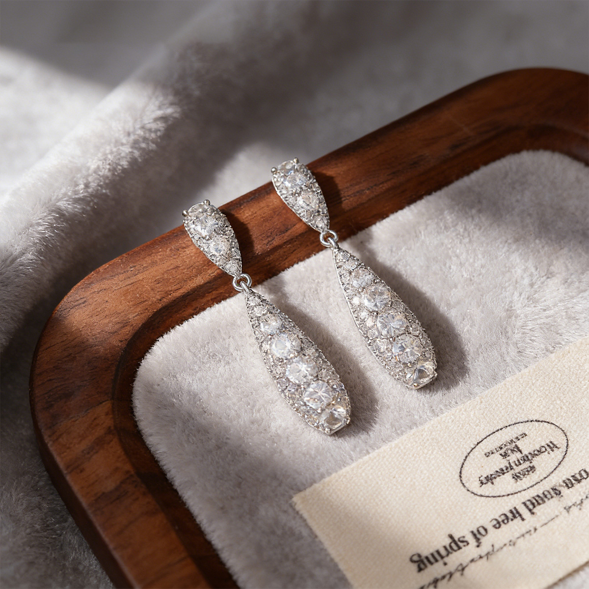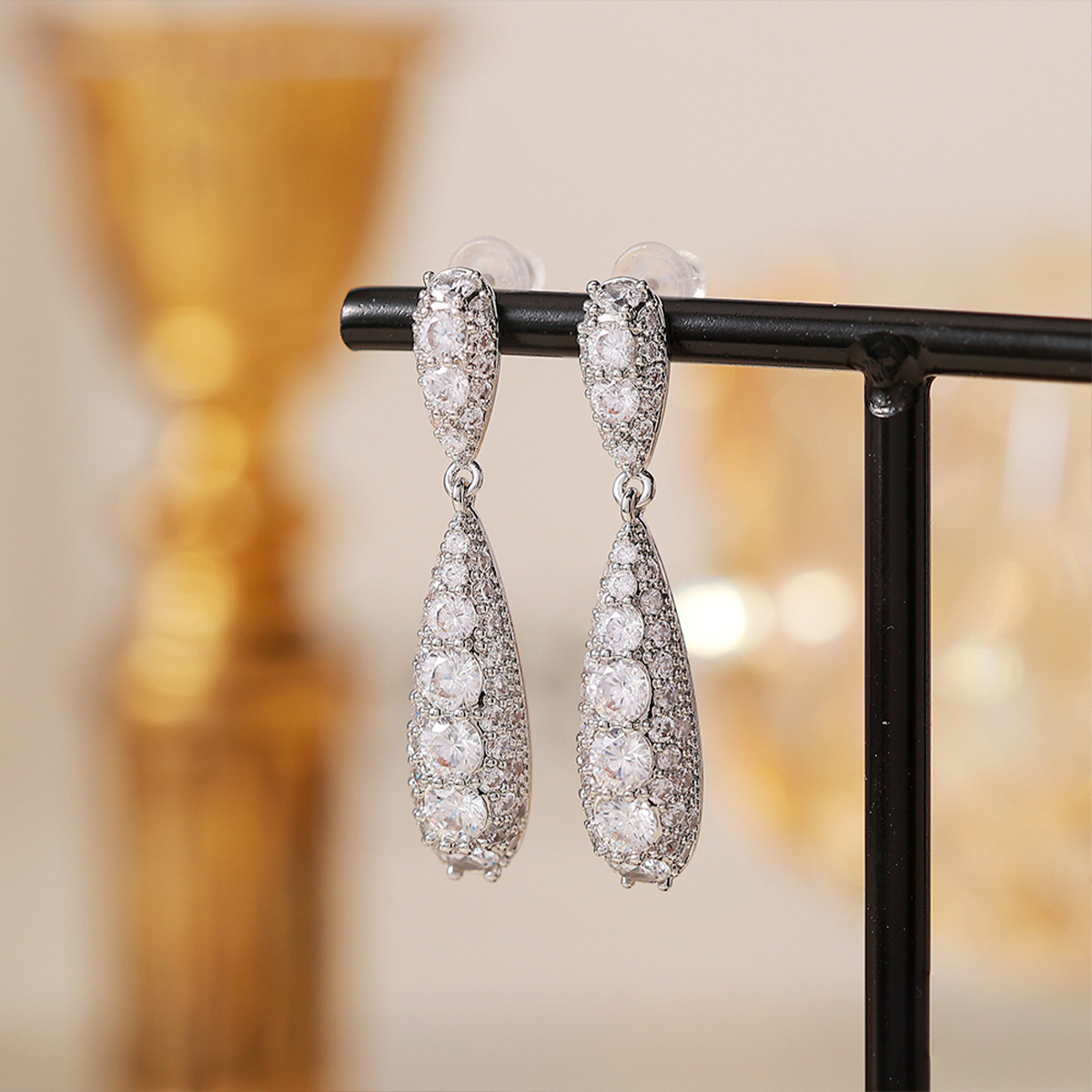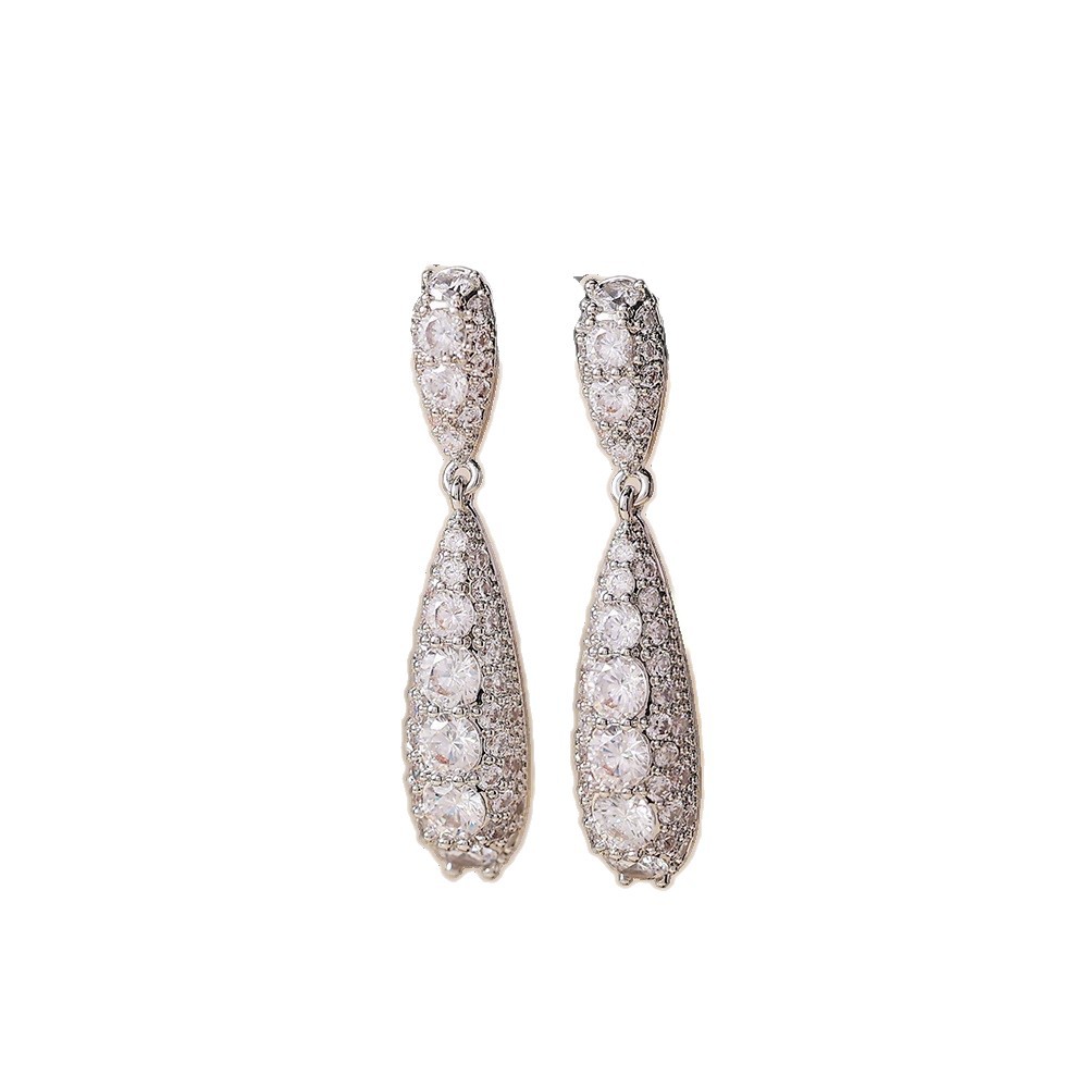 silver full-diamond water-drop tassel earrings