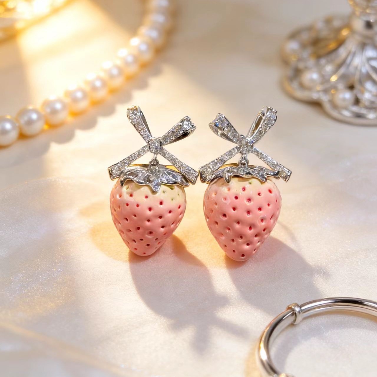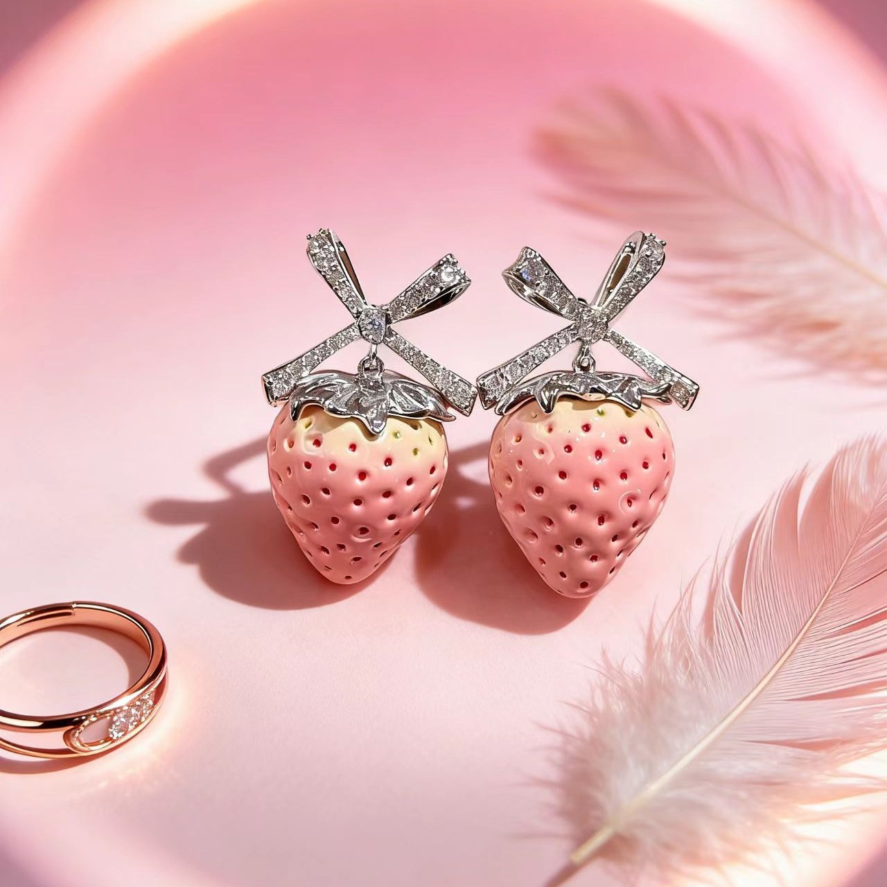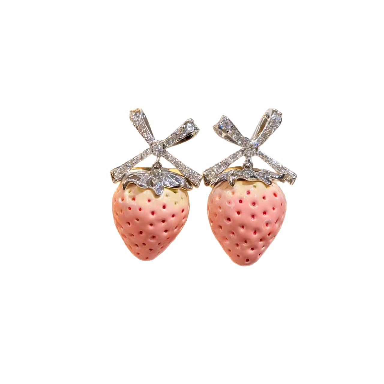 pink strawberry bow stud earrings