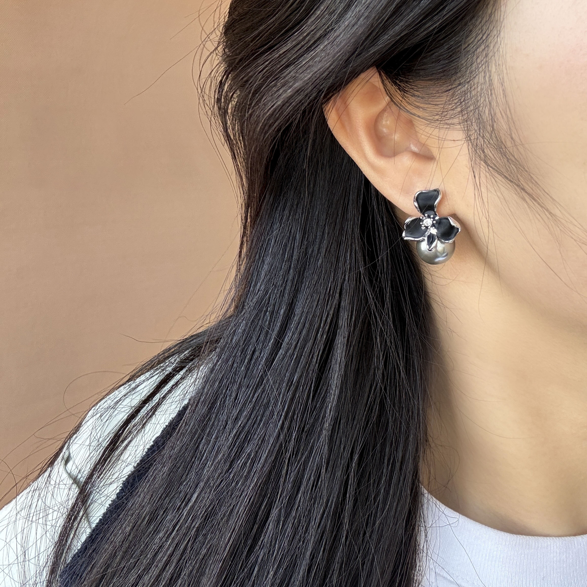 flower pearl stud earrings
