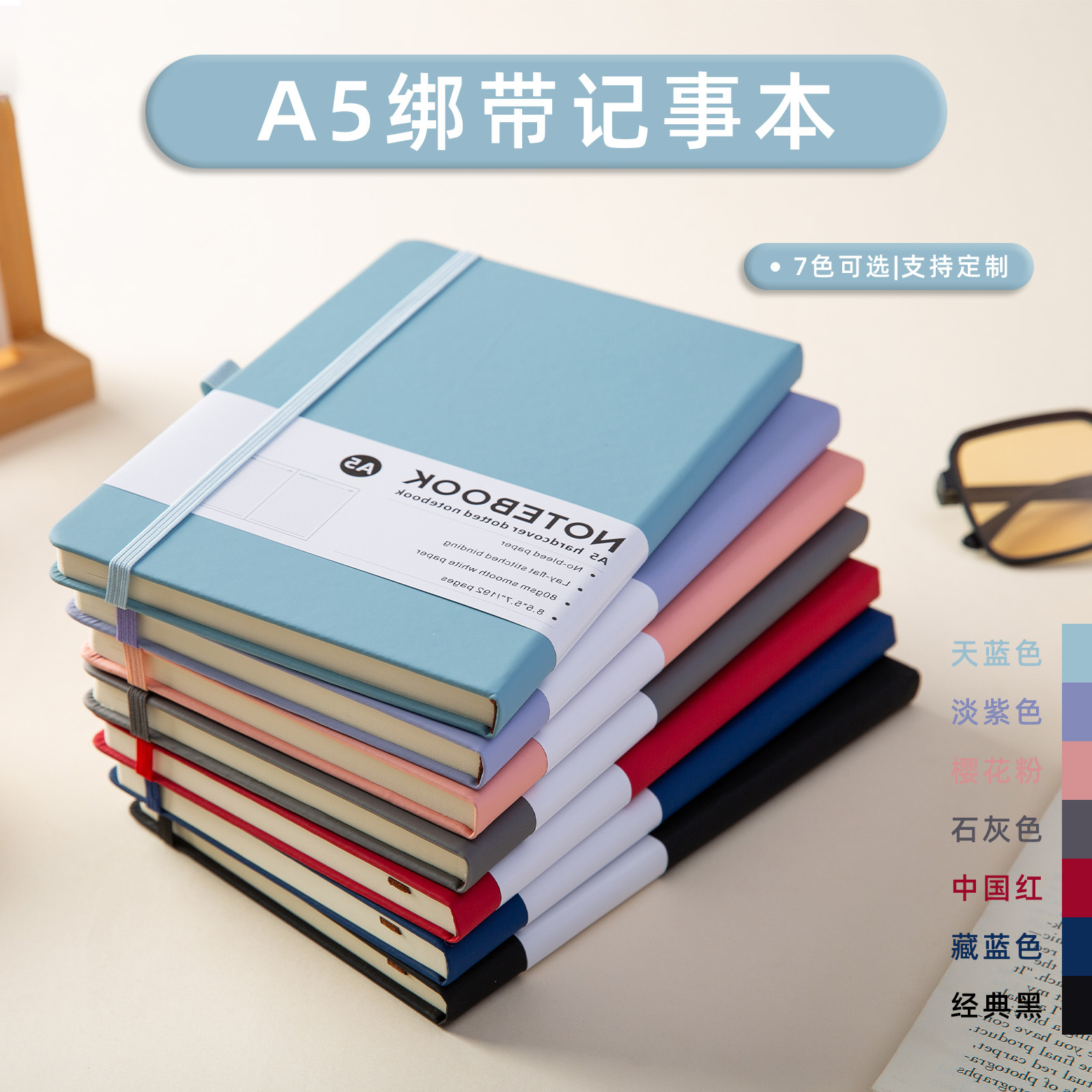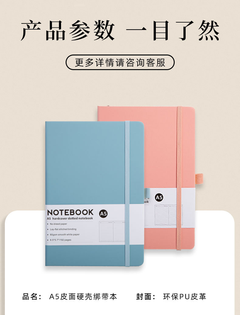 cross-border a5 bandage notebook customization good-looking refined and simple college student journal book full inner pages with horizontal lines notebook