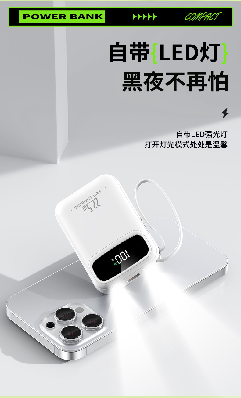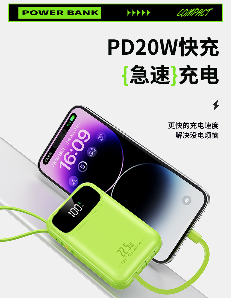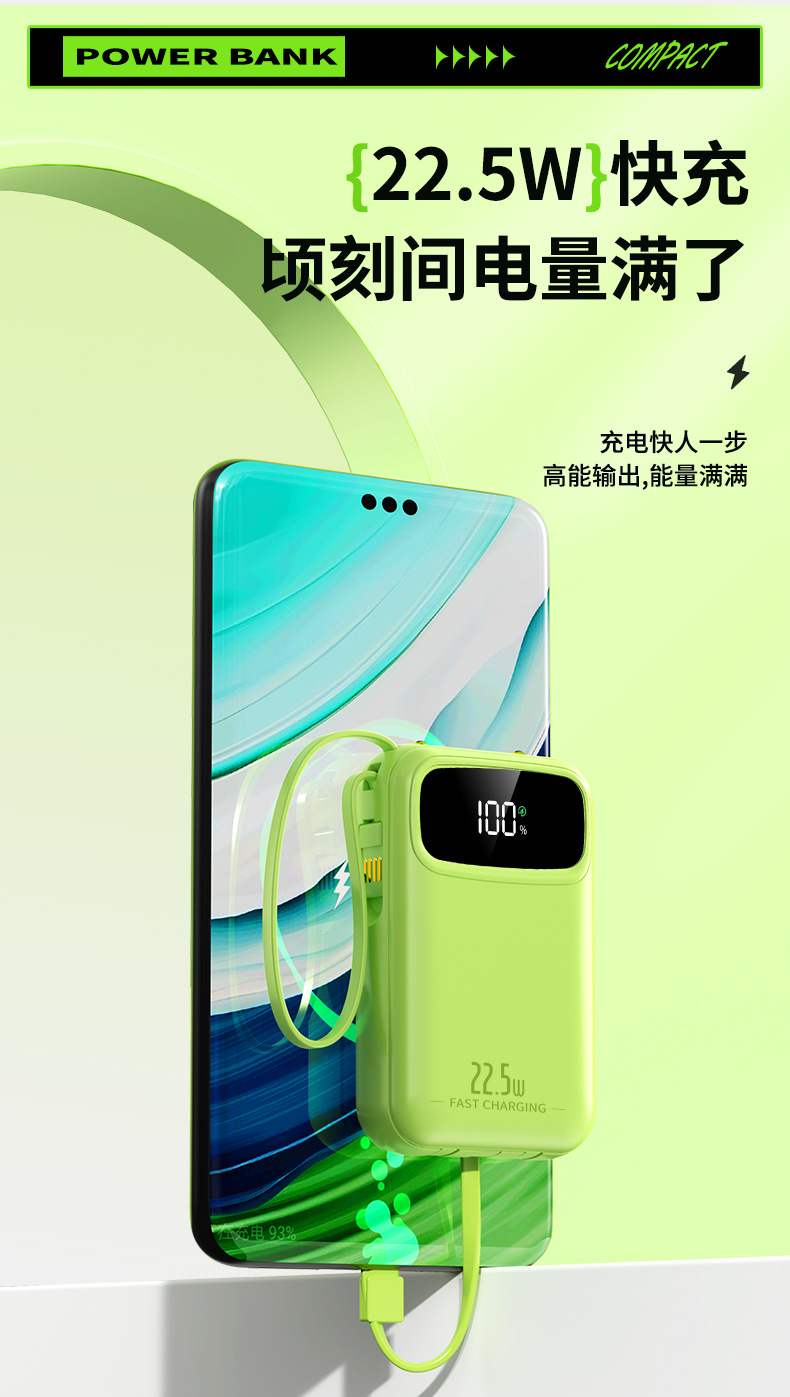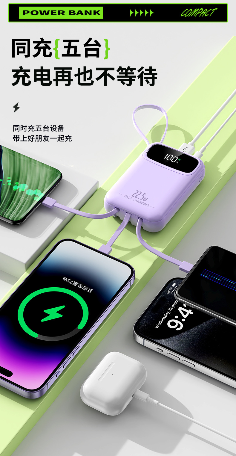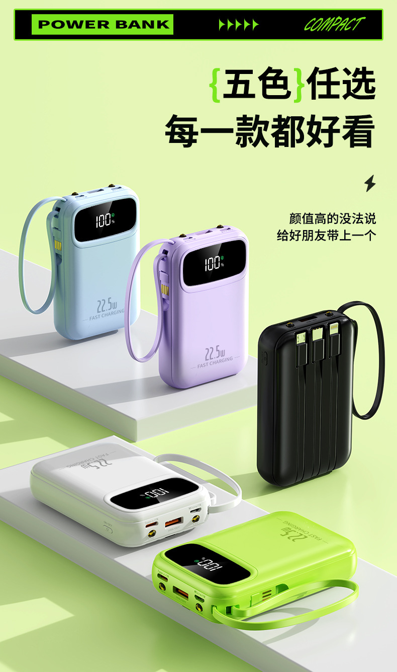 new 22.5w super fast charge with cable power bank 3c certified 20000 ma mini large capacity gift