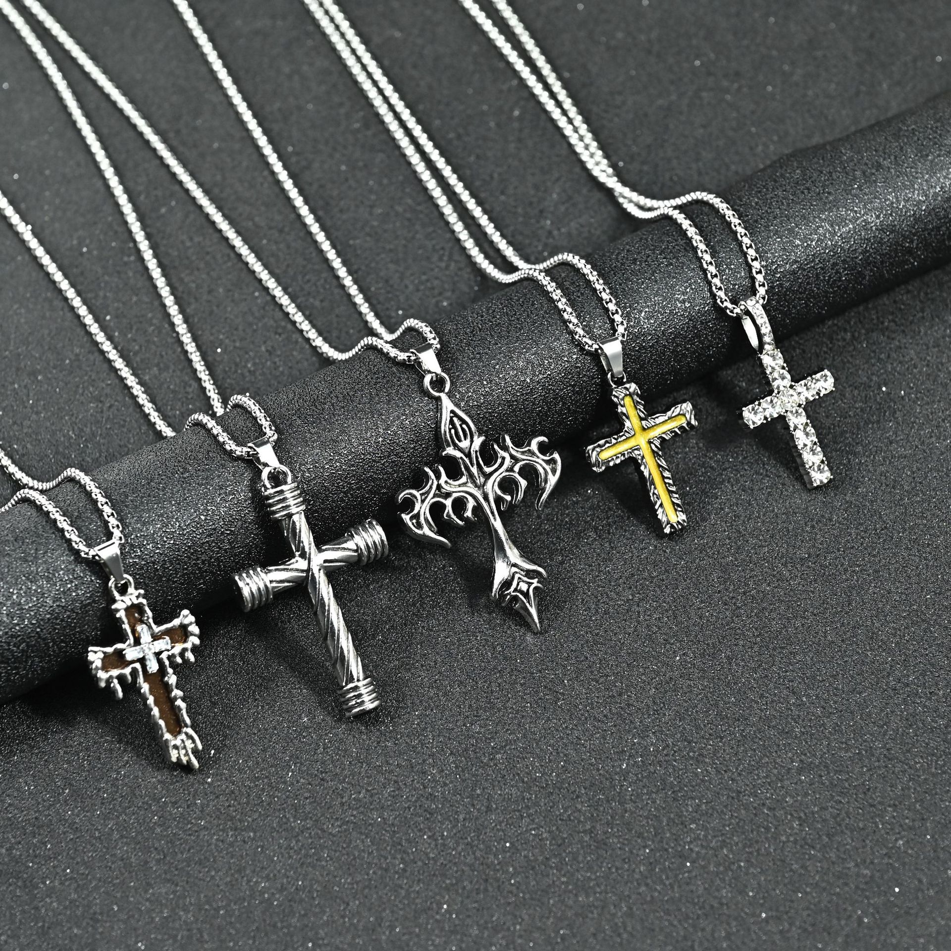 #5 cylindrical cross necklace-titanium steel