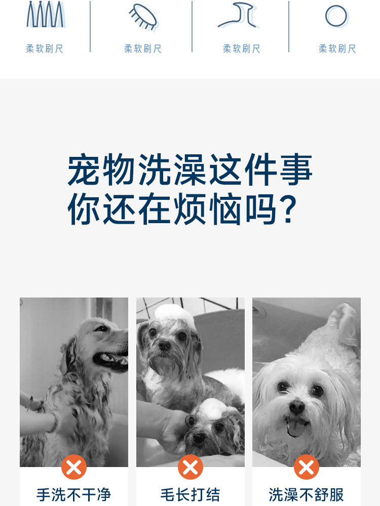 pet shower brush (transparent blue)