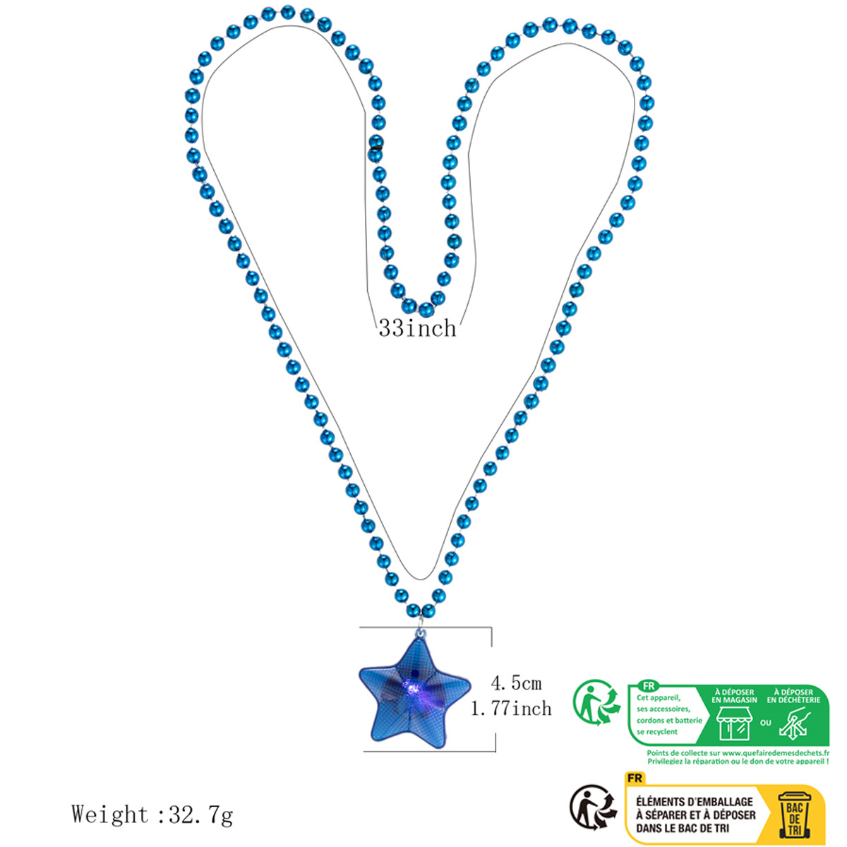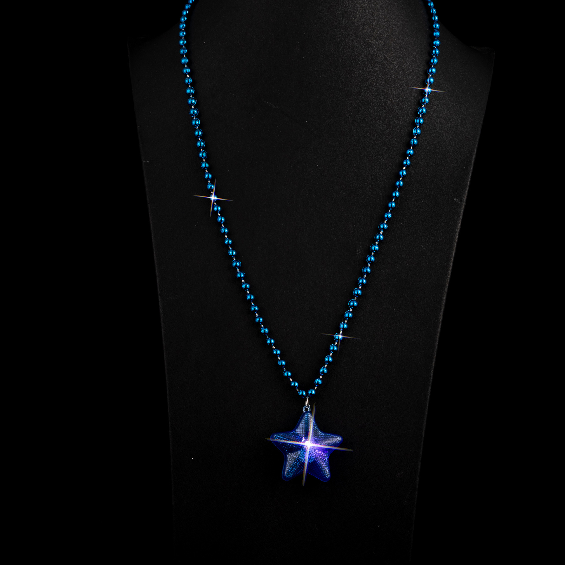 blue small five-pointed star bead necklace
