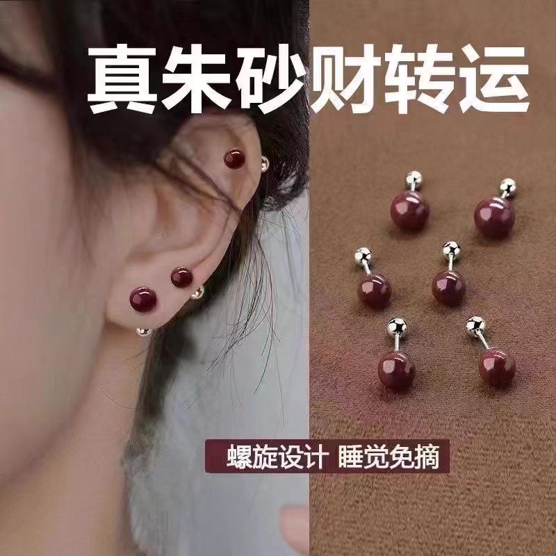 spiral cinnabar ear studs 4mm pair
