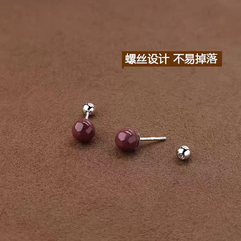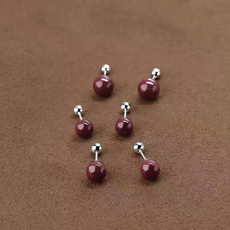 spiral cinnabar ear studs 6mm pair