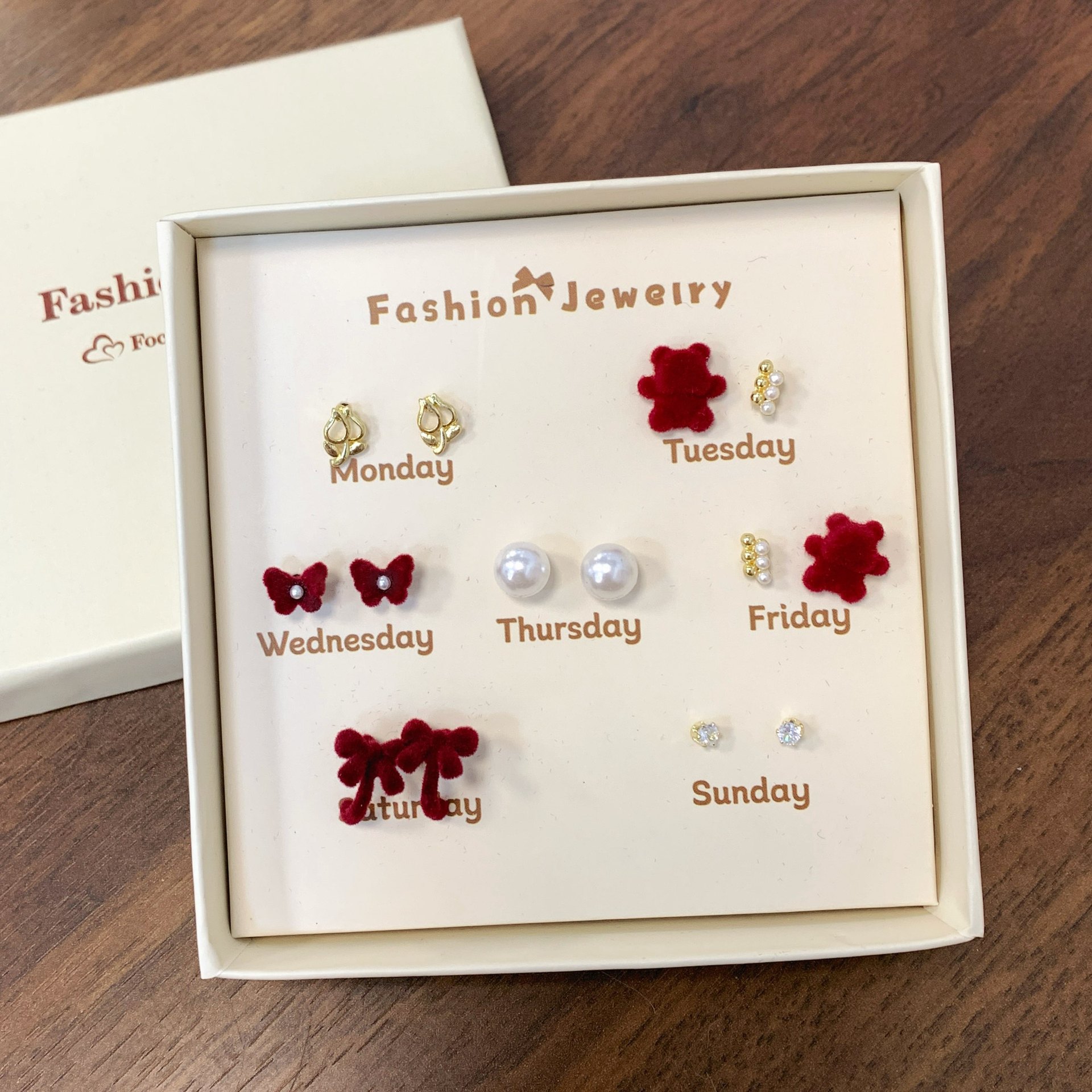 ck50 red fat bear ear studs gift box